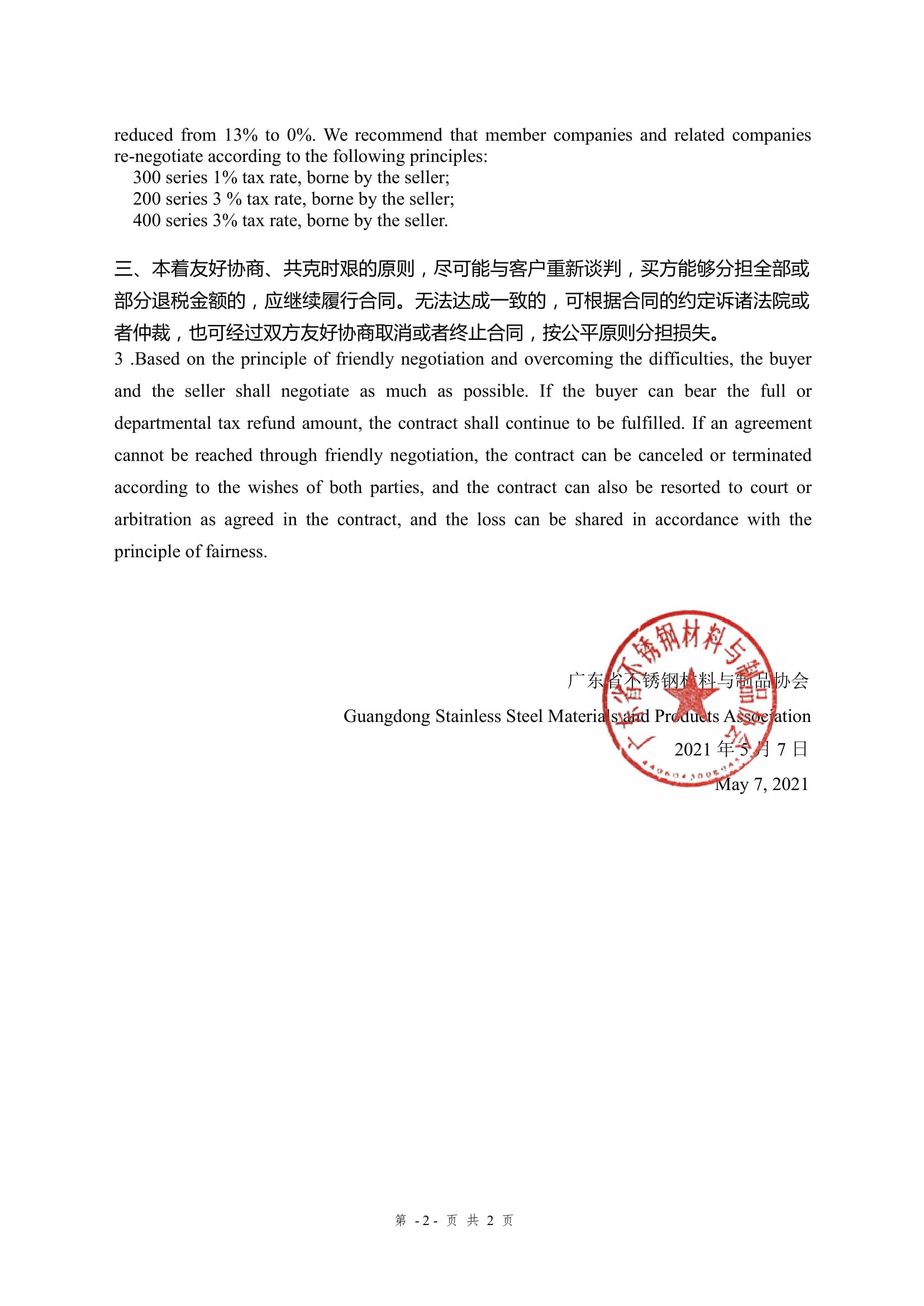 关于不锈钢行业应对出口退税政策调整的倡议书
