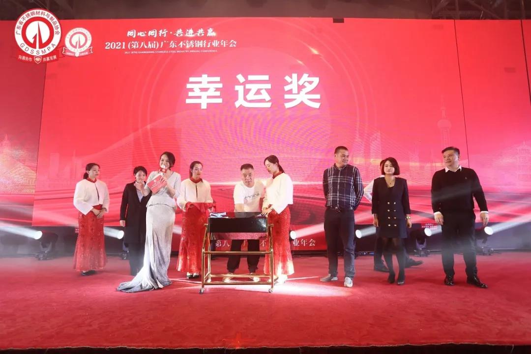 在龙鼓表演助兴和协会领导班子上台祝酒后,交流晚宴在一派祥和喜庆的气氛中进行。精彩节目和抽奖活动赢得了现场会员代表的一阵阵掌声,在觥筹交错、欢声笑语之间,会员代表们感受着广东省不锈钢材料与制品协会这个大家庭的温暖,2021(第八届)广东不锈钢行业年会圆满谢幕。