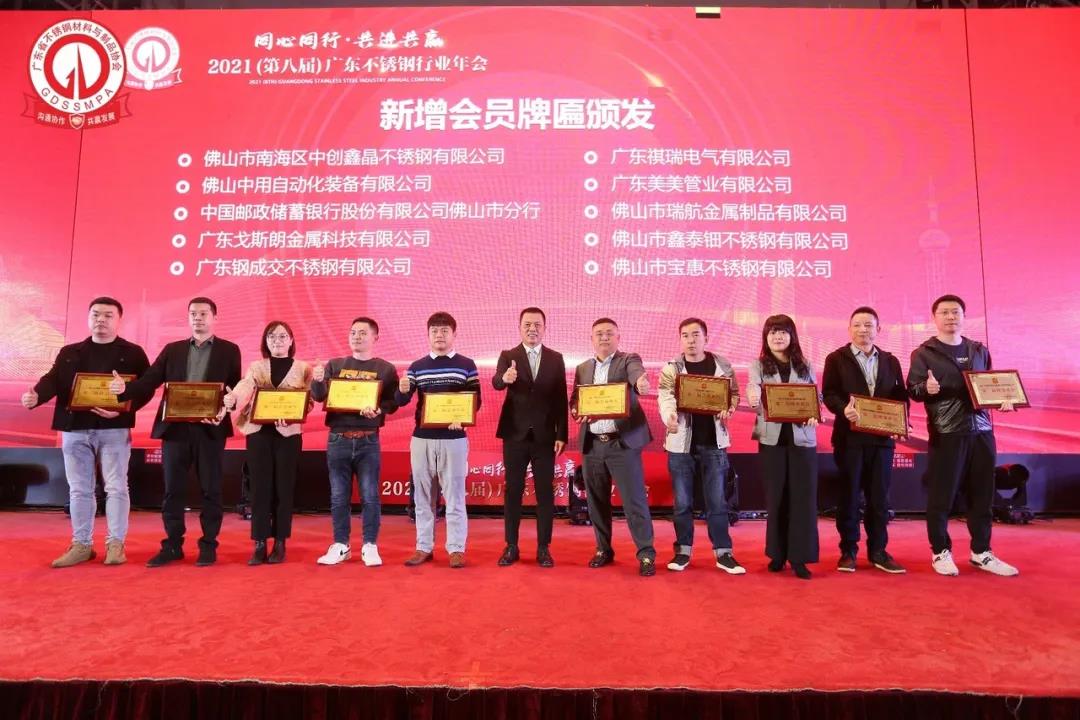 2021年12月23日下午,由广东省不锈钢材料与制品协会主办的”同心同行 共进共赢”2021(第八届)广东不锈钢行业年会在佛山市成功举行。