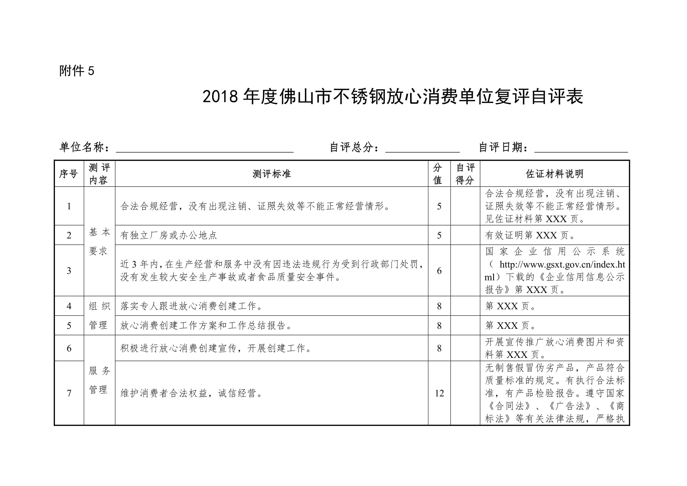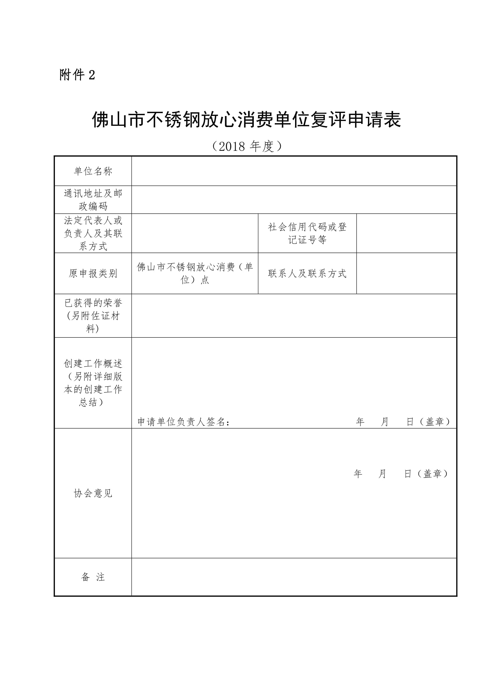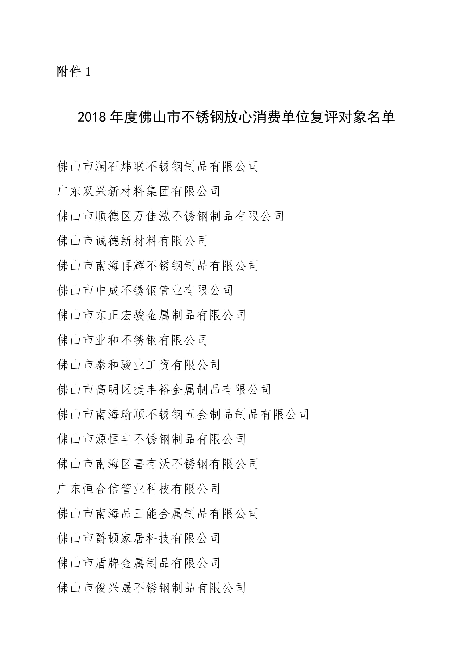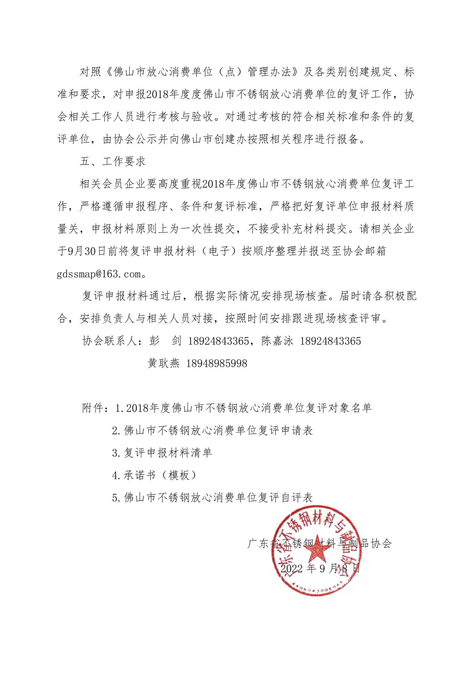 关于开展2018年度佛山市不锈钢放心消费单位复评工作的通知