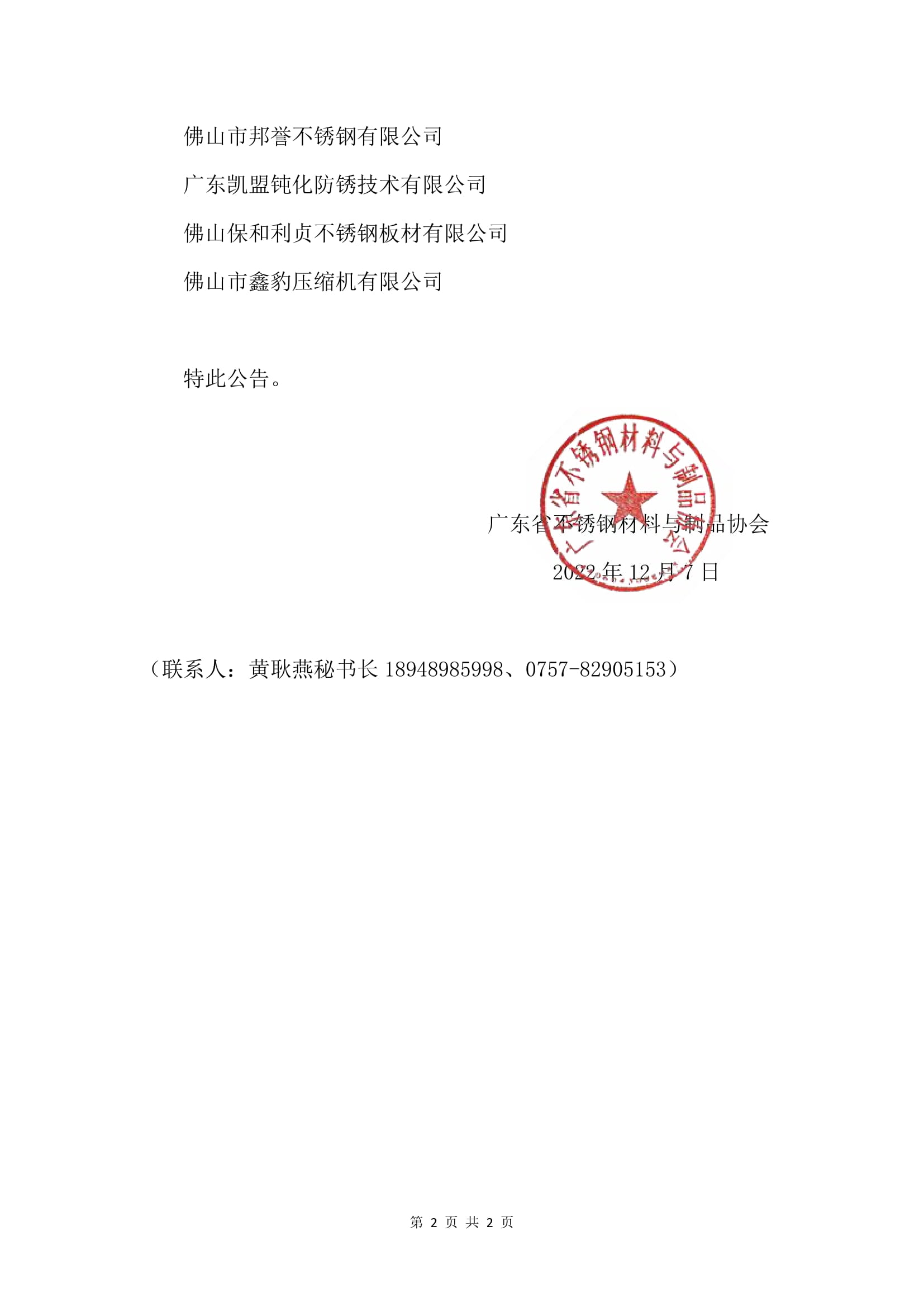 广东省不锈钢材料与制品协会2022年上半年新增会员公告