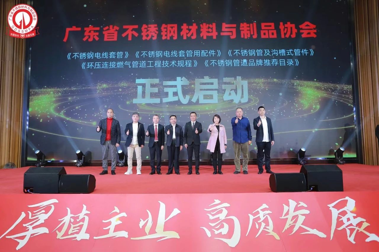 省工商联领导、协会领导代表共同完成团体标准《不锈钢电线套管》《不锈钢电线套管用配件》《不锈钢管及沟槽式管件》《环压连接燃气管道工程技术规程》和特刊《不锈钢管道品牌推荐目录》启动仪式。