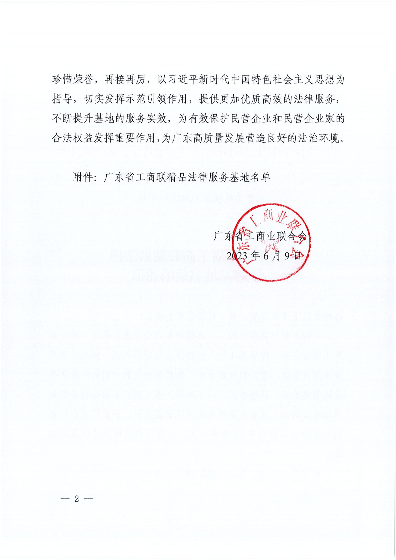喜报!我会被认定为广东省工商联精品法律服务基地