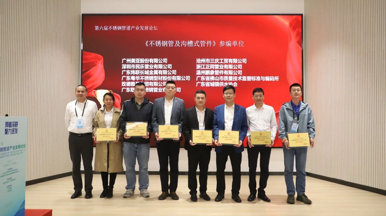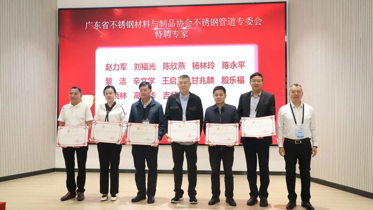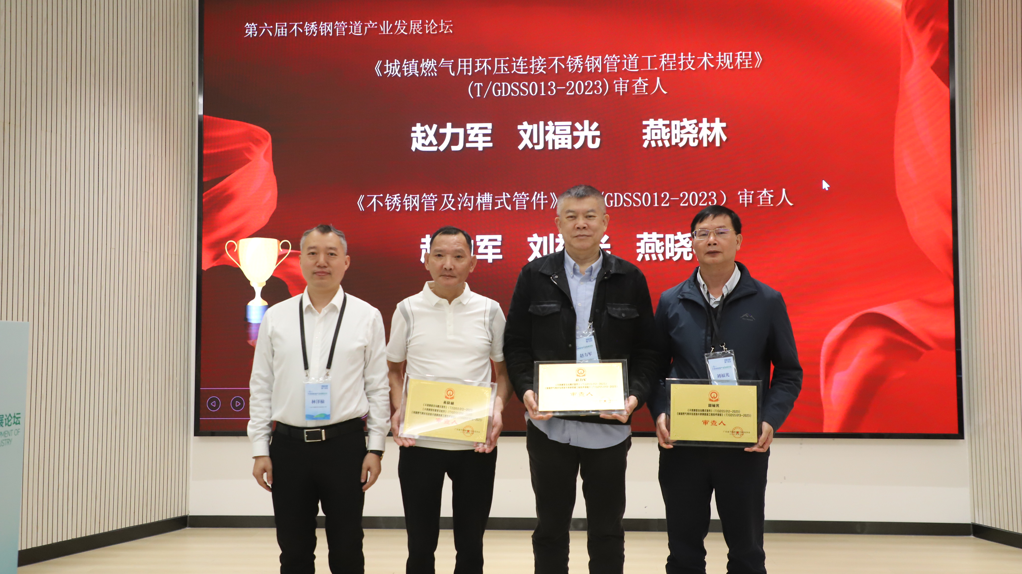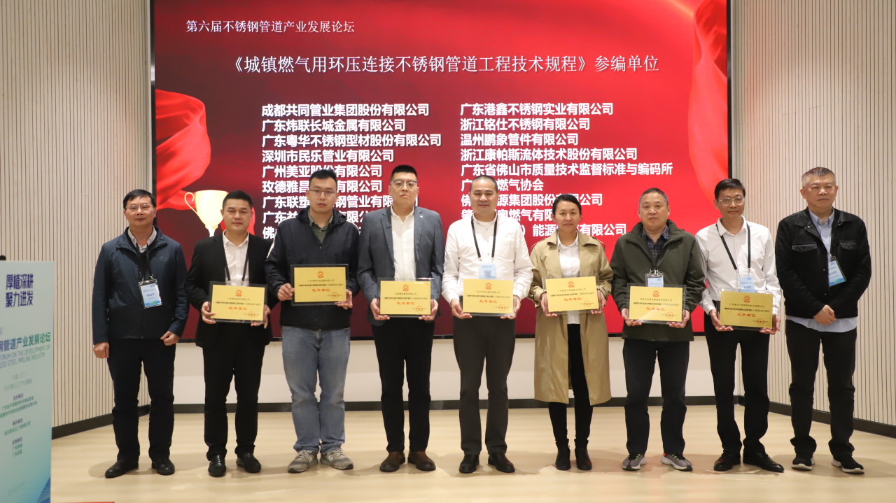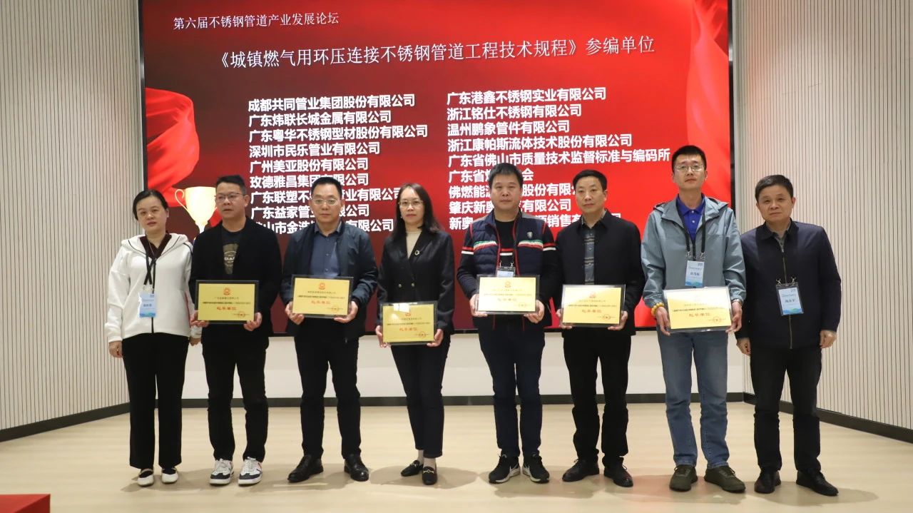借论坛举办的契机,对《城镇燃气用环压连接不锈钢管道工程技术规程》、《不锈钢管及沟槽式管件》审查人和起草单位,以及广东省不锈钢材料与制品协会不锈钢管道专委会特聘专家聘书和本次论坛承办单位、支持单位牌匾进行了颁发。