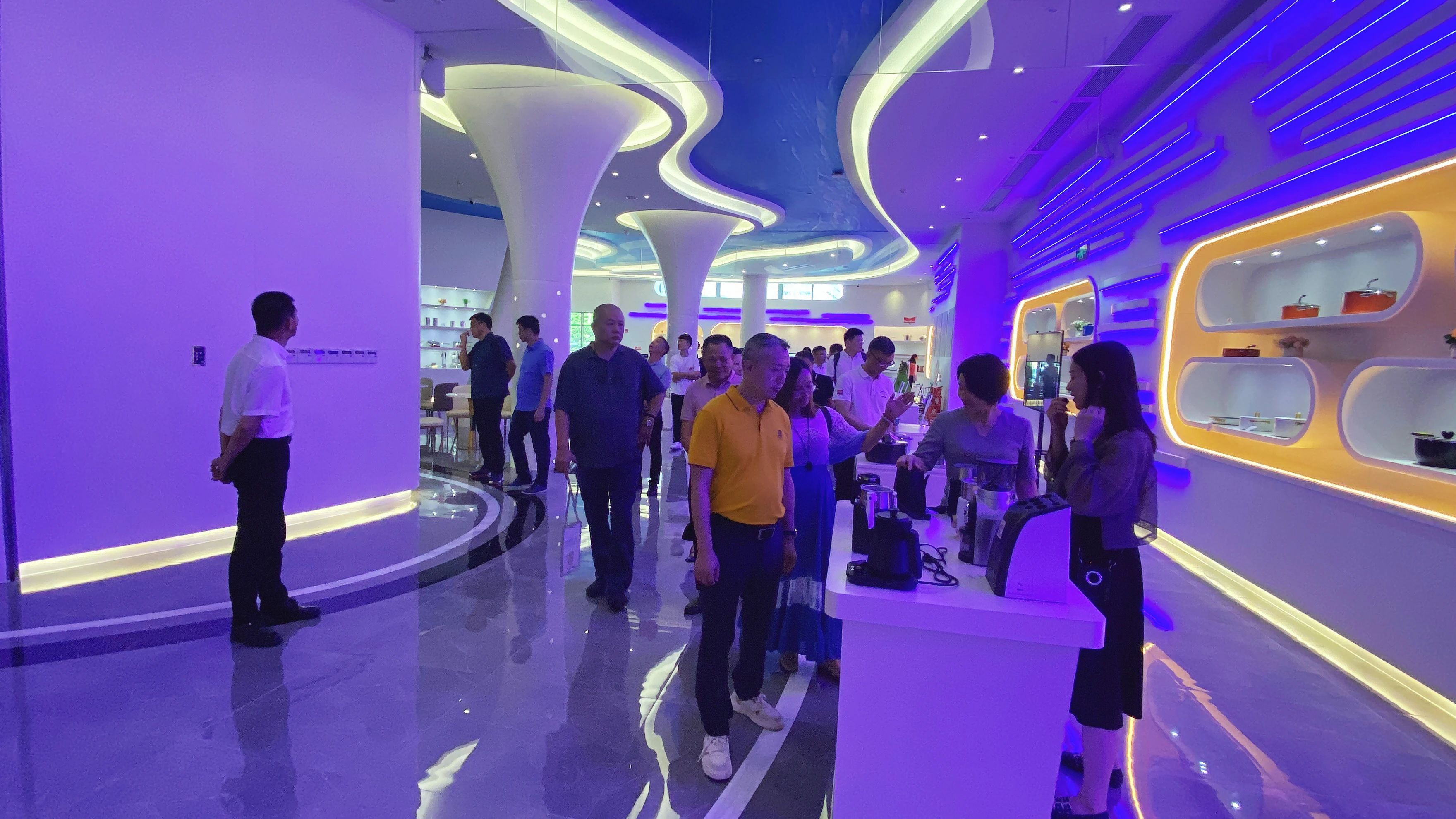 协会一行人走进凌丰智能制造中控中心,每一条生产线的生产计划、排产、排程、调度集中管控,展厅内陈列的各种高端不锈钢餐厨具琳琅满目。据介绍,近年来,凌丰不断加速转型升级,深入推动“一体化、自动化、信息化、智能化”建设,目前已建成投产10条不锈钢锅具和铝锅自动化生产线,应用工业机器人和机械手2000多台套。