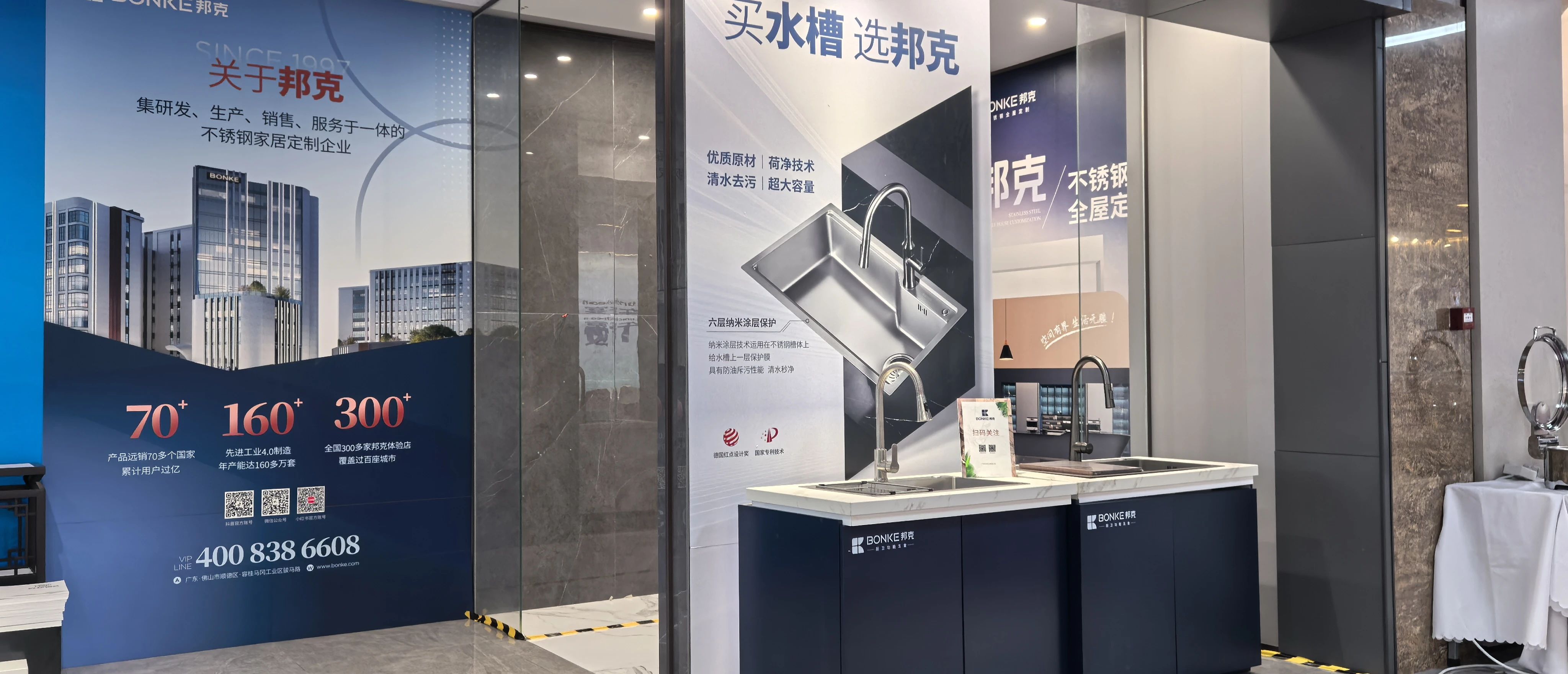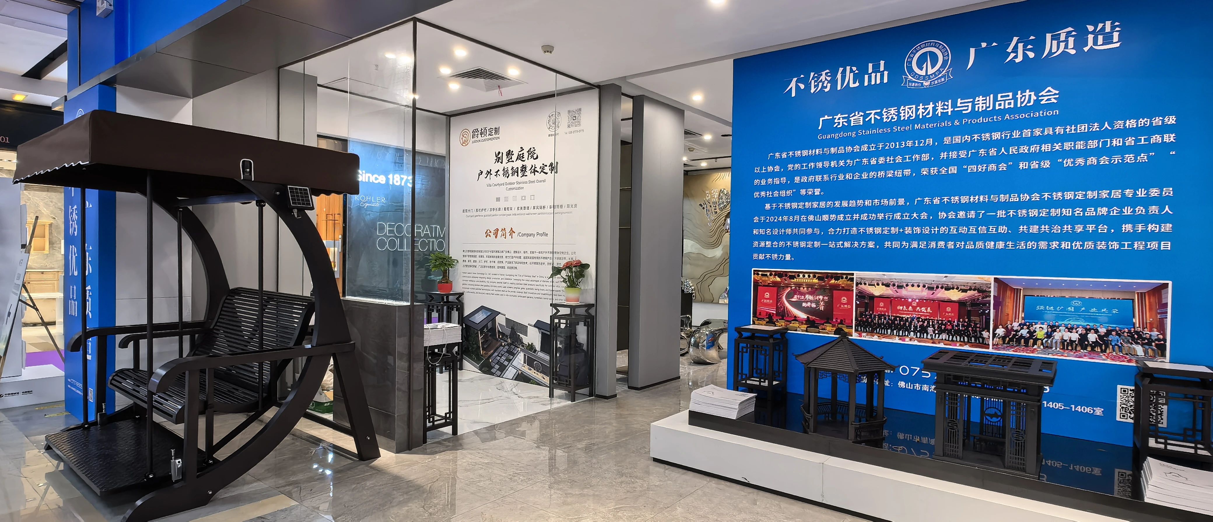 10月18日,第41届陶博会在佛山中国陶瓷城开幕。为加大力度推广不锈钢定制家居,并吸引建筑陶瓷领域经销商、采购商的关注度,广东省不锈钢材料与制品协会在中国陶瓷城四楼特设展示专区,并组织不锈钢定制家居专委会名誉主任单位广东邦克、副秘书长单位佛山爵顿、广东忠创进行品牌宣传与精品展示。