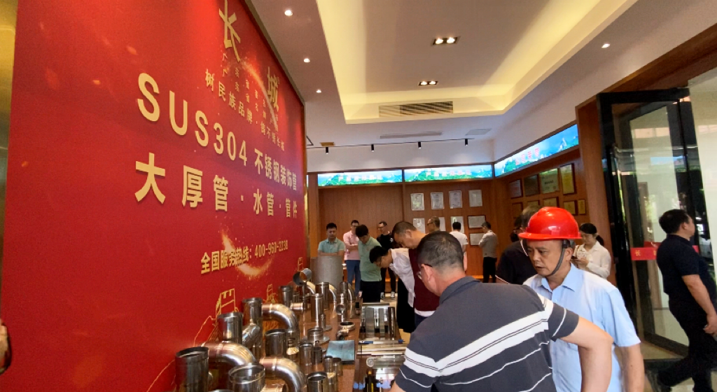 午餐后,广东省不锈钢材料与制品协会组织部分参会代表副江门开平翠山湖参观常务副会长单位广东炜联长城金属有限公司,现场近距离、更直观的了解不锈钢管的生产。