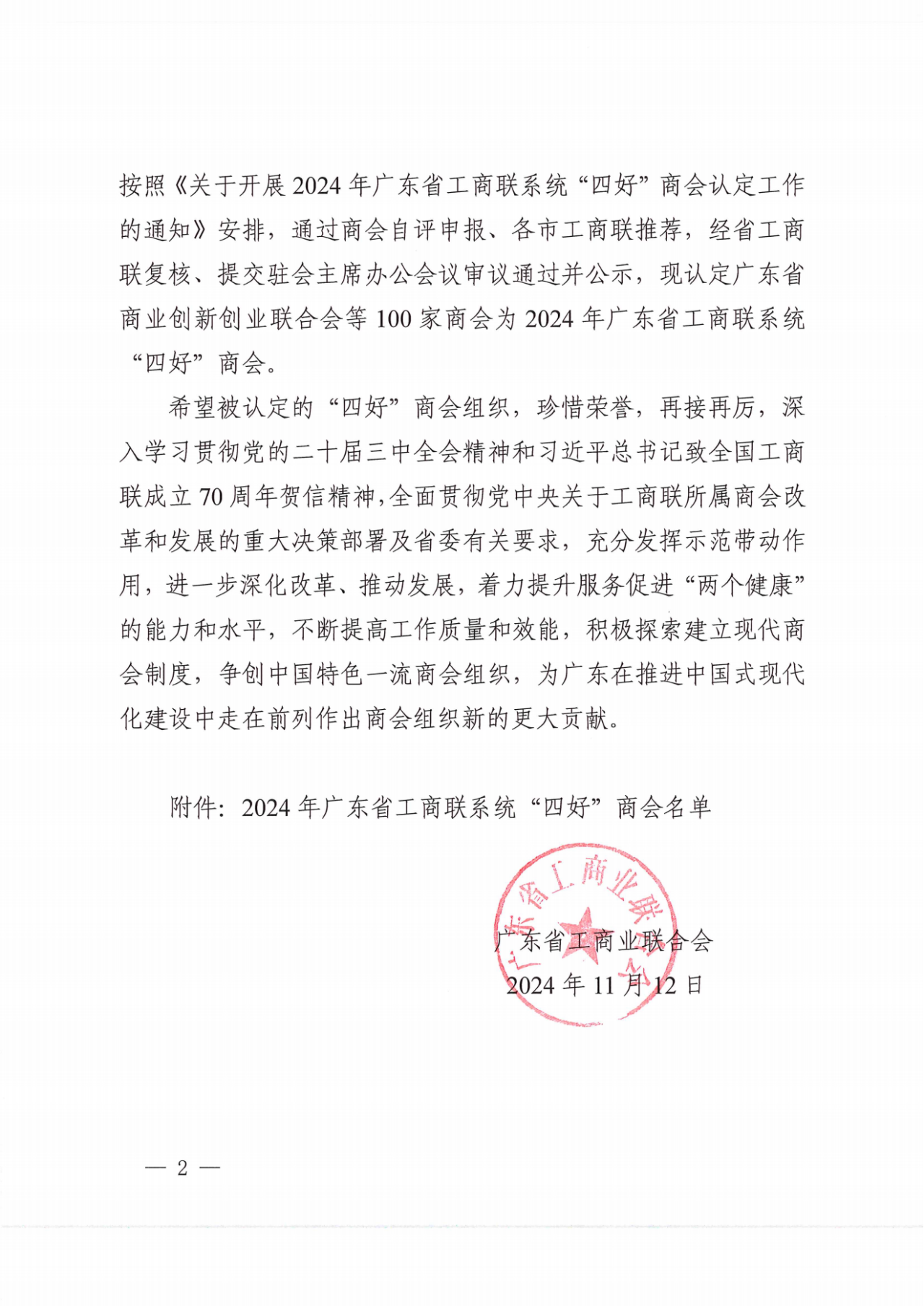 祝贺我会荣获2024年广东省工商联系统“四好”商会称号