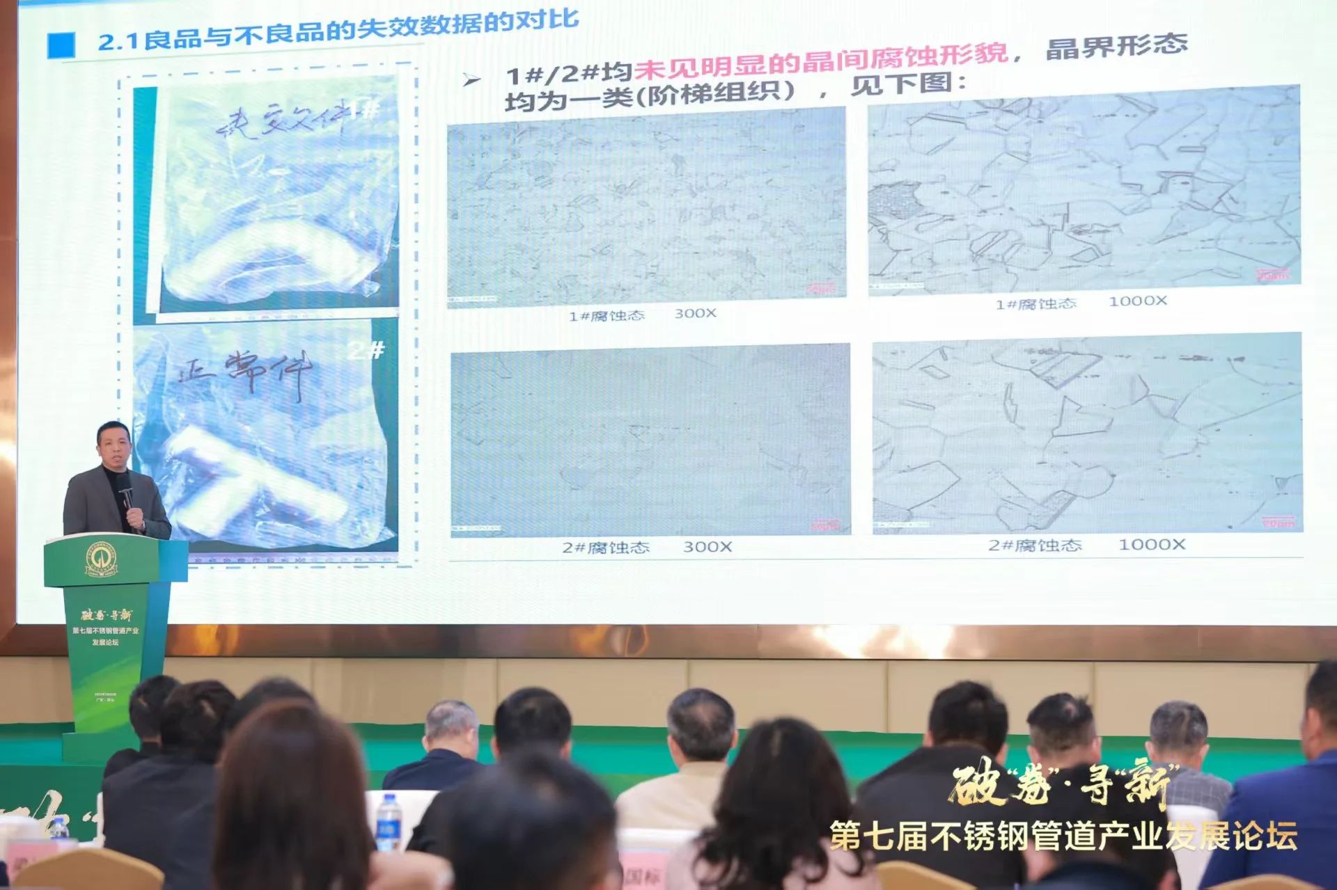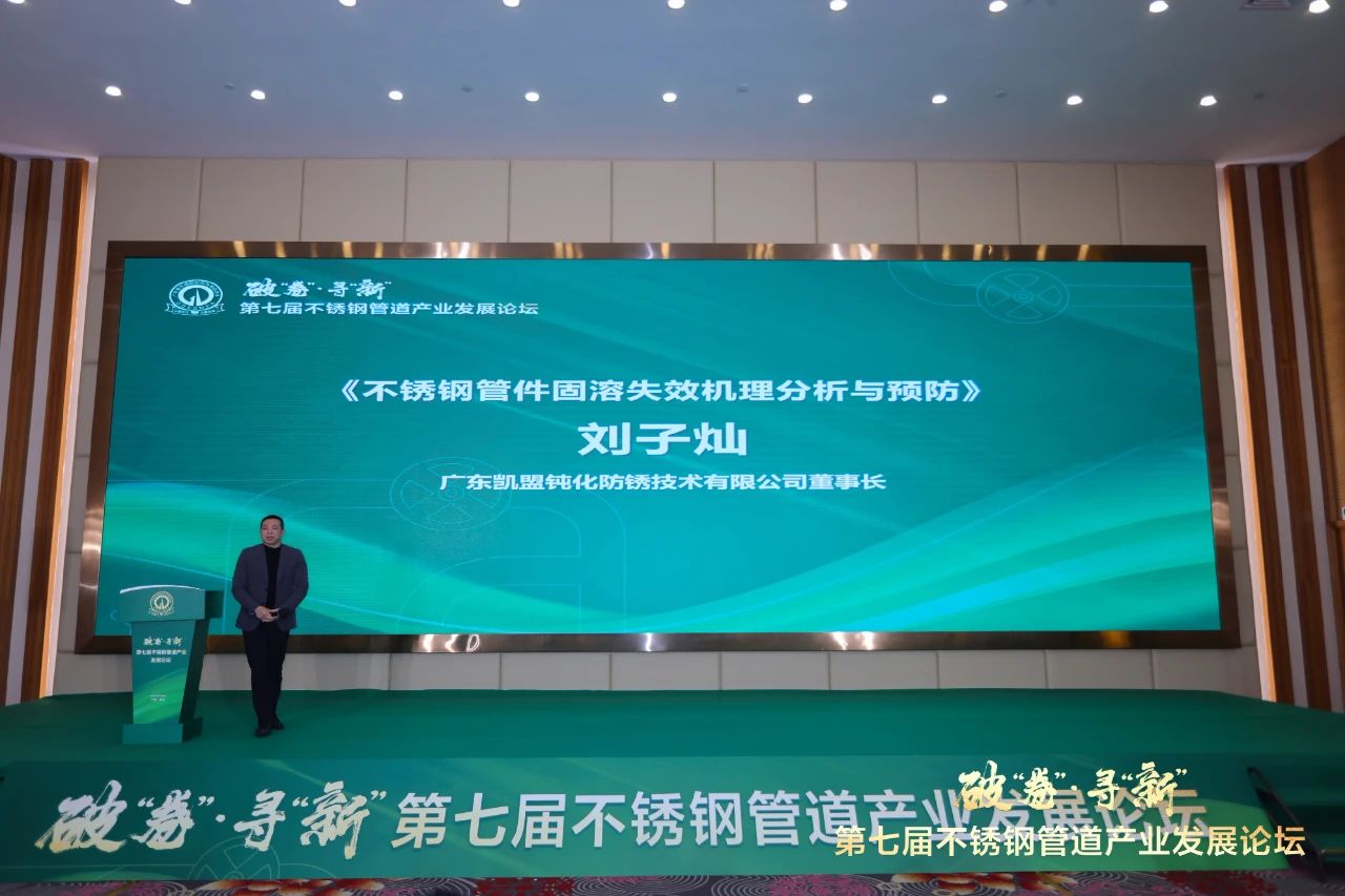 广东凯盟董事长刘子灿作《不锈钢管件固溶失效机理分析与预防》报告。刘总通过多年的实践对固溶工艺及概念进行专业讲解,从不良原因进行微观分析,再通过固溶实验的具体验证,分享了固溶失效的预防方法。