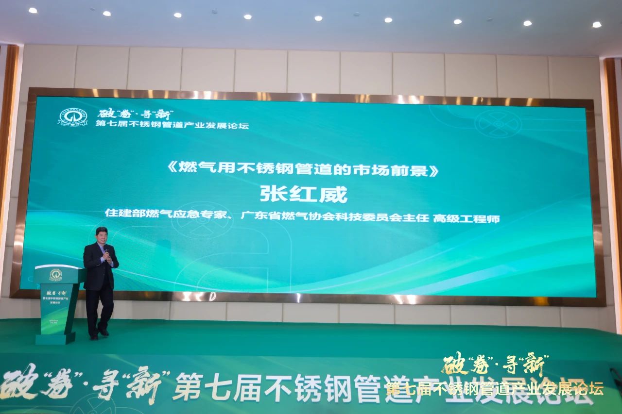 住建部燃气应急专家、广东省燃气协会科技委员会主任、高级工程师张红威作《燃气用不锈钢管道的市场前景》主题报告。他从相关政策推动与市场需求、性能与技术优势、成本优势等方面入手,让参会者了解到燃气用不锈钢管道所面临的挑战与机遇并存,同时鼓励不锈钢管道企业加大力度拓展燃气领域的市场。