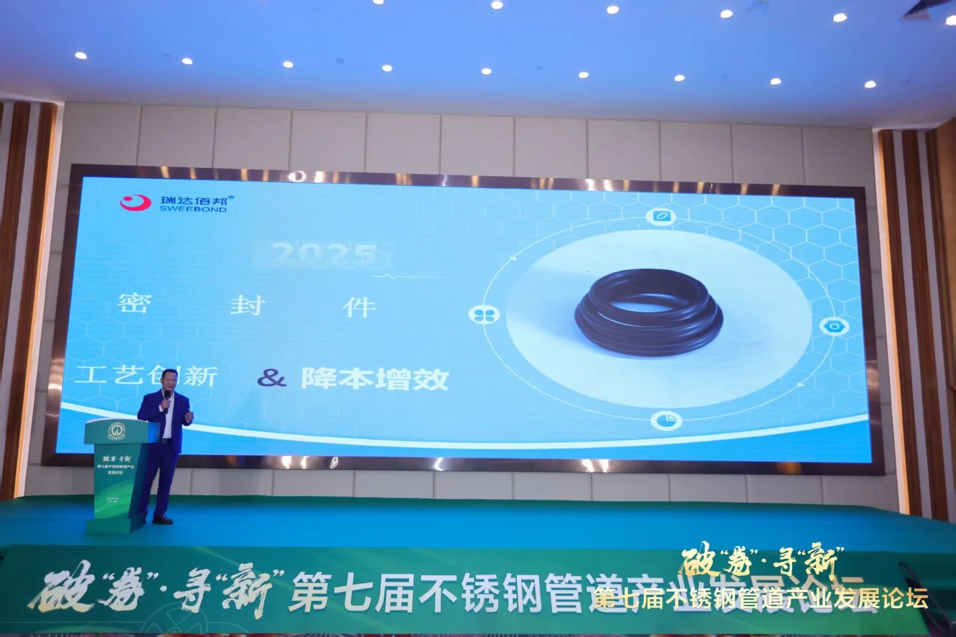 广东瑞达佰邦总经理赵魁伟做《新工艺助力不锈钢管道密封件降本增效》报告。赵总通过展示车间多个生产视频向大家直观的展现了如何通过工艺创新,在密封件方面助力不锈钢管道企业达到降本增效的目的。