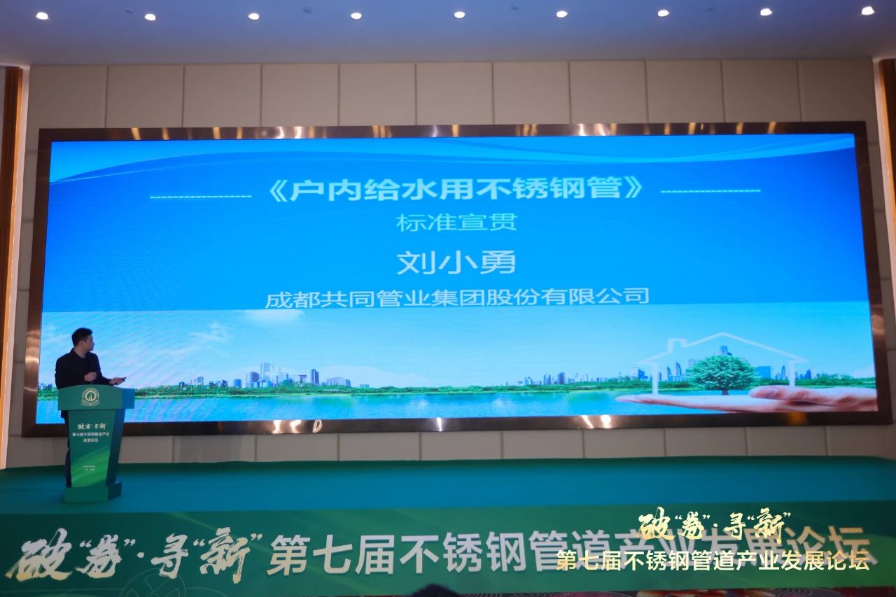 成都共同管业集团股份有限公司技术部长刘小勇对广东省不锈钢材料与制品协会团体标准《户内给水用不锈钢管》进行宣贯解读。他从该标准的编制背景、主要内容等作了简明扼要的宣贯解读,表示该标准有效填补了行业相关标准空白,将对行业企业未来拓展家装领域的市场发挥重要作用。