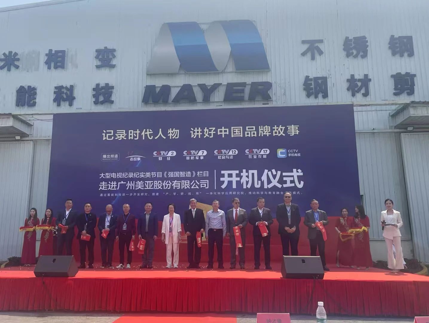 3 月 25 日,广东省不锈钢材料与制品协会副会长单位广州美亚股份有限公司隆重举行央视《强国智造》栏目纪录片开机仪式。广东省不锈钢材料与制品协会会长林泽榆应邀出席活动并剪彩,秘书长黄耿燕一同参加。来自政府领导和美亚合作伙伴以及媒体代表出席本次发布会,共同见证这一里程碑时刻。