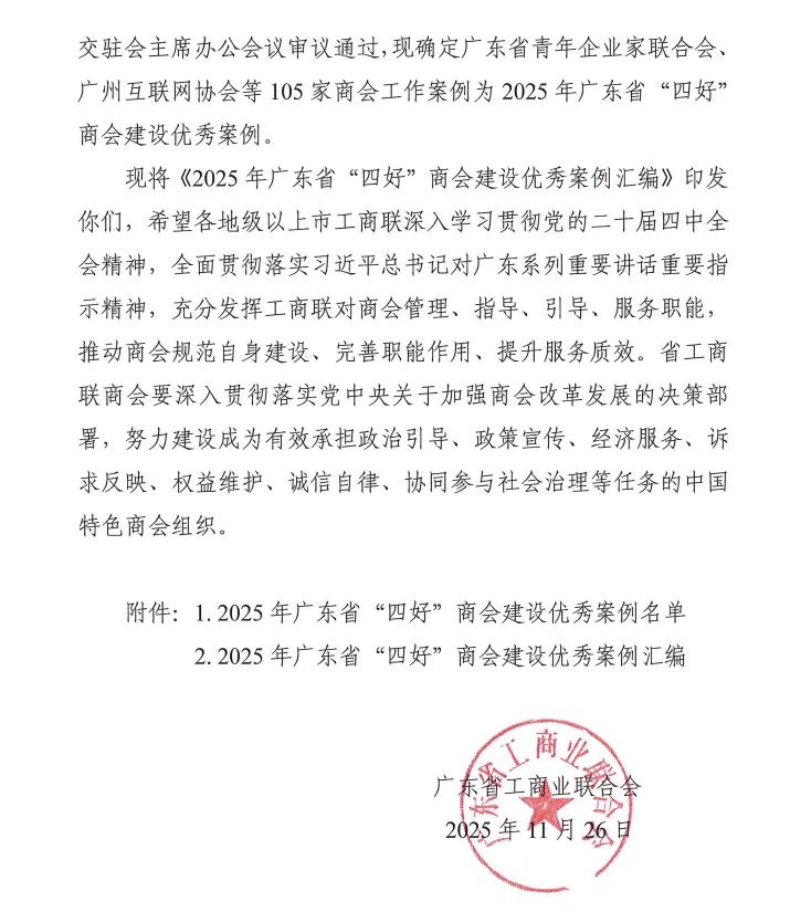 近日,广东省工商联印发了《关于印发2025年广东省“四好”商会建设优秀案例的通知》,经省工商联遴选、提交驻会主席办公会议审议通过并公示,确定全省105家商会工作案例为2025年广东省“四好”商会建设优秀案例,其中省级商协会15家,广东省不锈钢材料与制品协会榜上有名。
