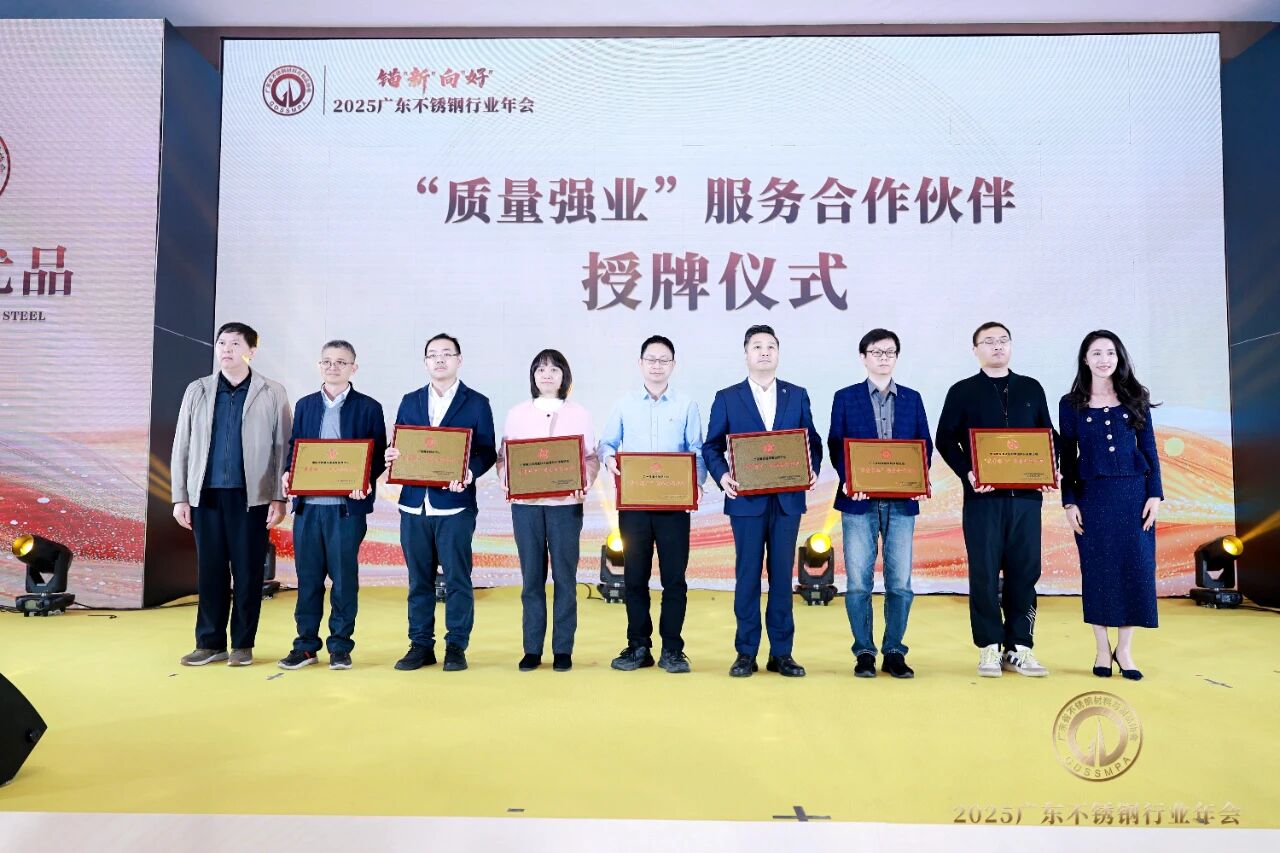 为进一步服务打造高美誉度、高质价比的广东不锈钢名企名品,引导依靠高质量的产品来强企业强产业强品牌强竞争力,广东省不锈钢材料与制品协会特别整合了质检、科研、标准、质量管理等知名专业机构等多方力量。大会为广东省不锈钢材料与制品协会“质量强业”服务合作伙伴颁发牌匾。