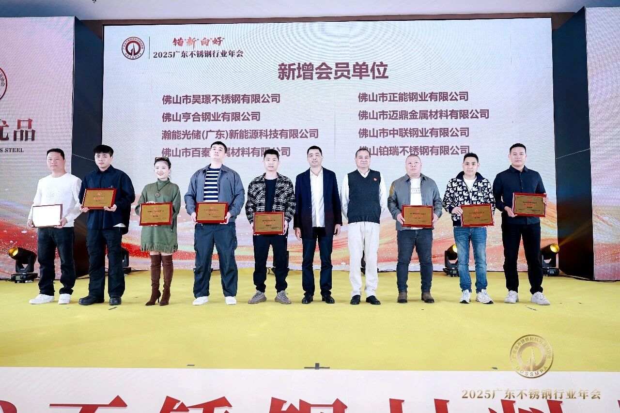 大会为广东省不锈钢材料与制品协会2025年第四季度新晋团体会员单位、理事单位及会员单位颁发牌匾。