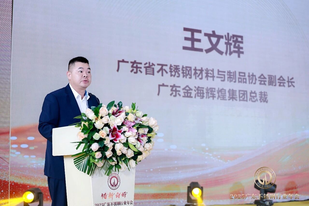 迎新联欢晚宴暨金海·弘毅之夜上,副会长、广东金海辉煌集团总裁王文辉热情洋溢地致祝酒词。他衷心感谢广东省不锈钢材料与制品协会的引领和赋能以及客户朋友的信任与陪伴。王总表示,这些年来,协会始终把不锈钢行业发展放在心上,既是广东不锈钢产业的领航者,也是我们不锈钢上下游企业间的桥梁纽带。金海会始终坚守初心,以高质量发展为核心,扎根行业、服务市场,以更大决心推进技改升级,让产品更有竞争力;以更务实的举措做好服务,筑牢供货、物流、售后全链条保障;以更开放的姿态融入协会平台,和行业同仁互帮互助、协同发展,共同推动广东不锈钢产业越来越好。