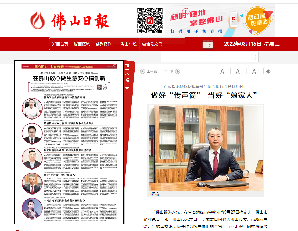 4月7日,广东省不锈钢材料与制品协会执行会长兼中国建材市场协会金属建材应用分会会长林泽榆、秘书长黄耿燕及助理陈嘉泳一行3人走访了理事单位佛欣、卡姆以及会员单位圆美,受到协会成员们的热情接待。佛欣:专注细分领域 ......发表于:2022-04-08
