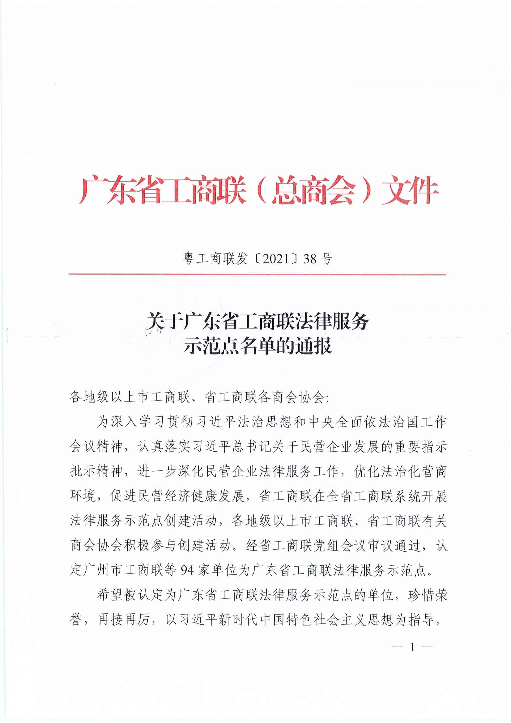 祝贺我会荣获2021年广东省工商联“四好”商会荣誉称号