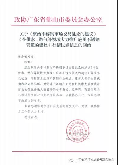 我会有关市场交易乱象、不锈钢管道推广应用两则信息获重视