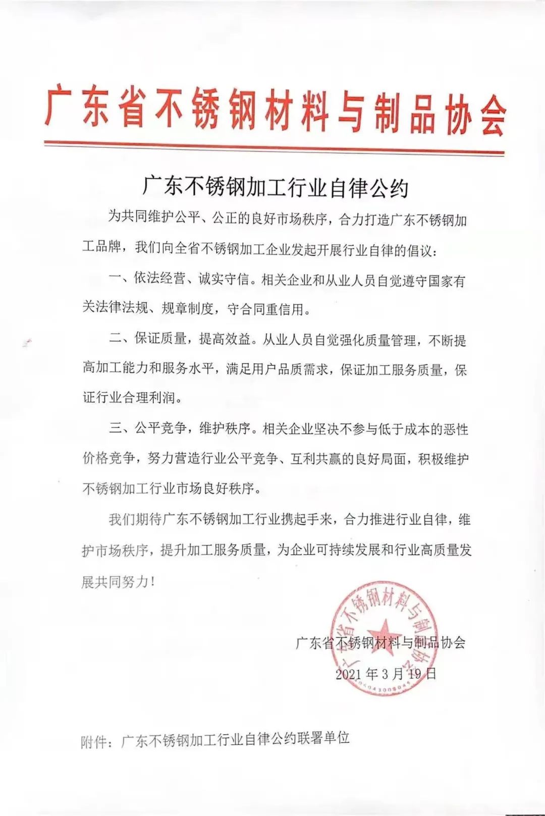 重磅!21家企业联署广东不锈钢加工行业自律公约
