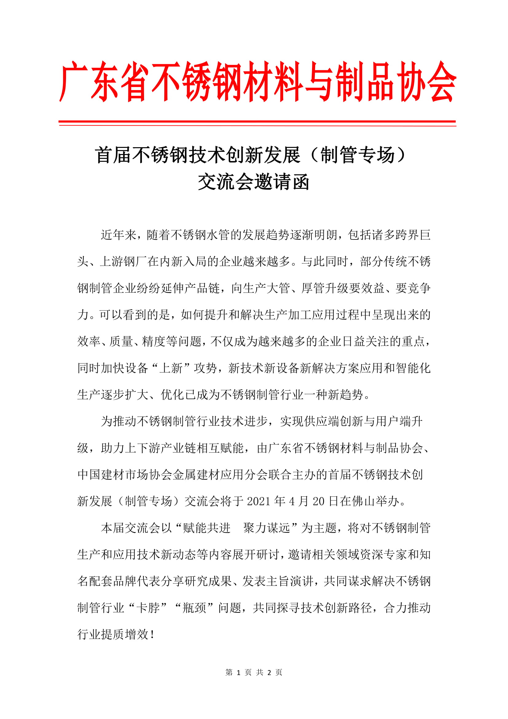 首届不锈钢技术创新发展(制管专场)交流会邀请函