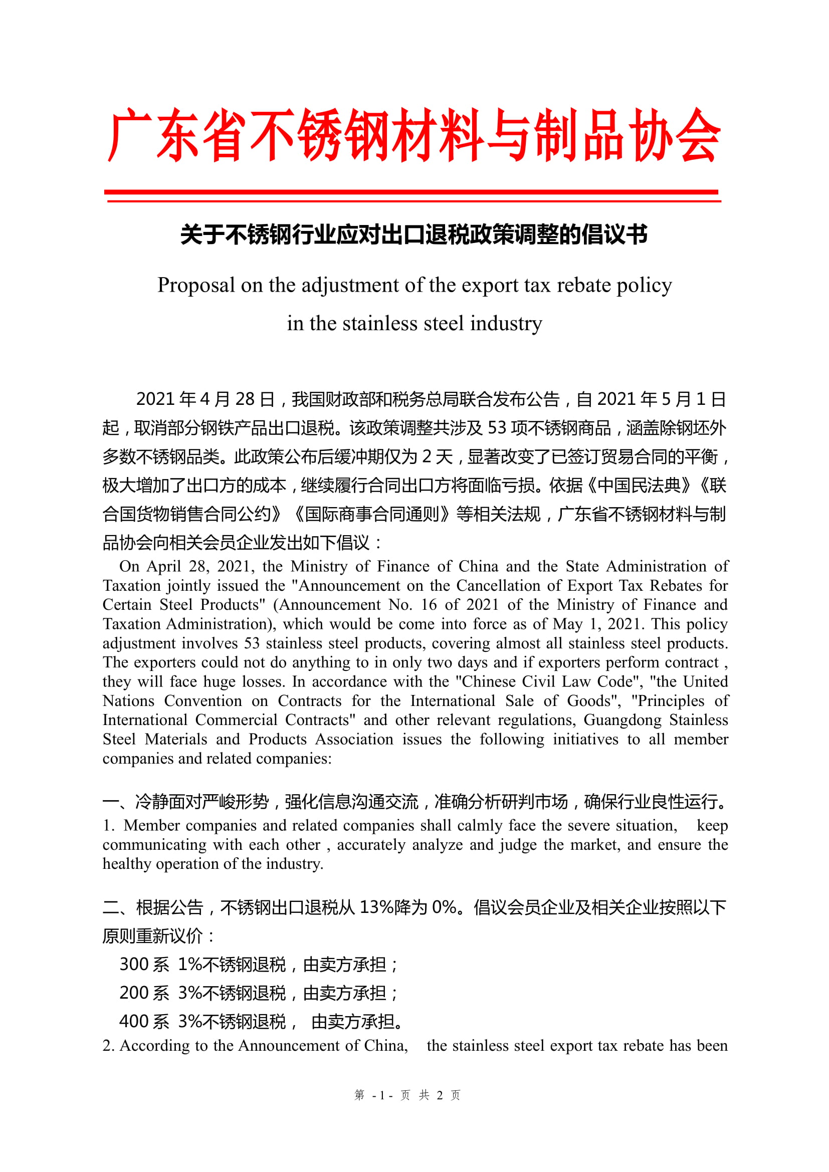 4月26日,国家财政部、税务总局发布2021年第16号《关于取消部分钢铁产品出口退税的有关事项公告》显示,自2021年5月1日起,取消包括33类不锈钢在内的部分钢铁产品出口退税。此政策对不锈钢行业外贸企业造成了明显的影响,面......发表于:2021-05-08