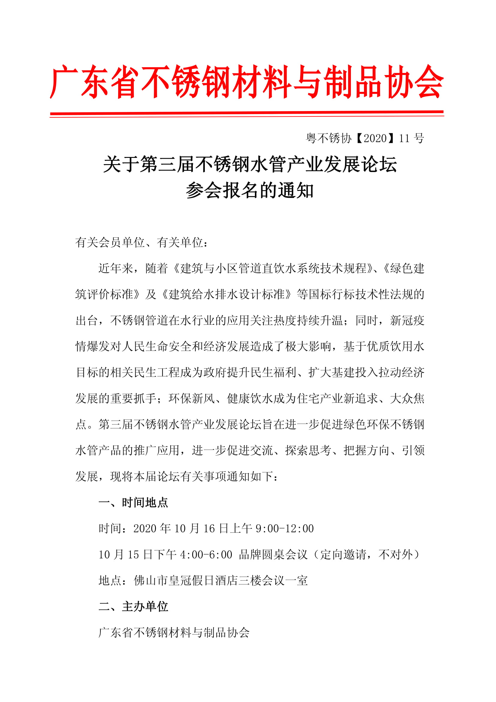 第三届不锈钢水管产业发展论坛参会报名通知