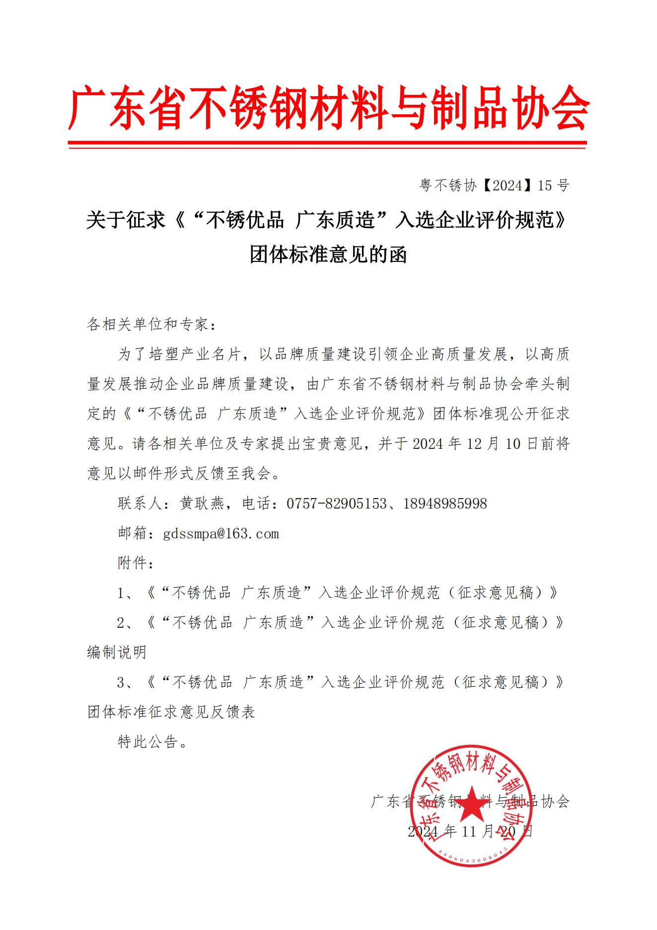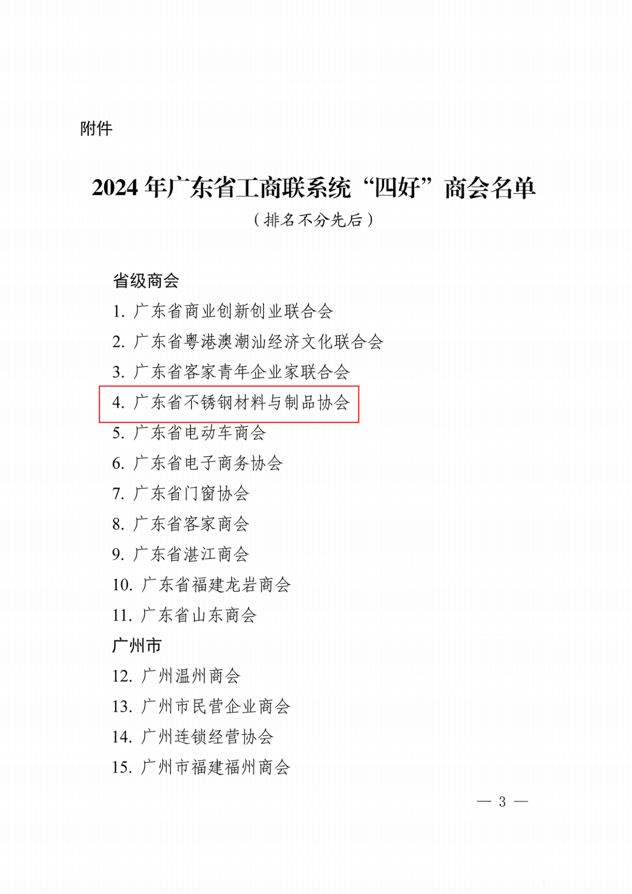 近日,广东省不锈钢材料与制品协会获得2024年“广东省工商联系统“四好”商会殊荣。10月12日,广东省工商联印发了《关于认定2024年广东省工商联系统“四好”商会的通知》(粤工商联发【2024】35......发表于:2024-11-18