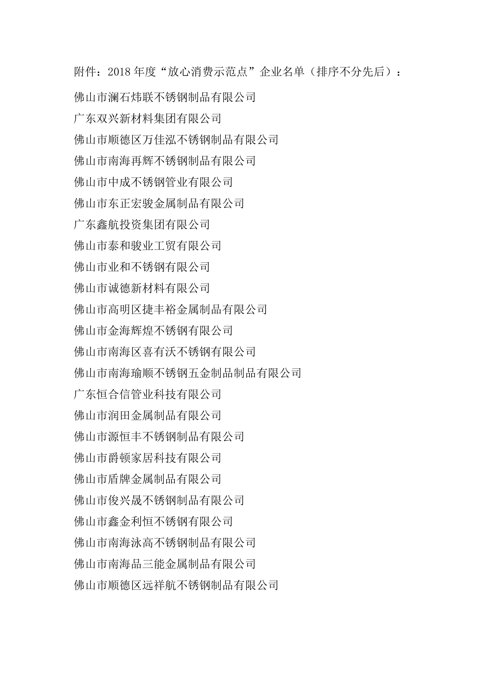 2018年度“放心消费示范点”企业名单(排序不分先后)