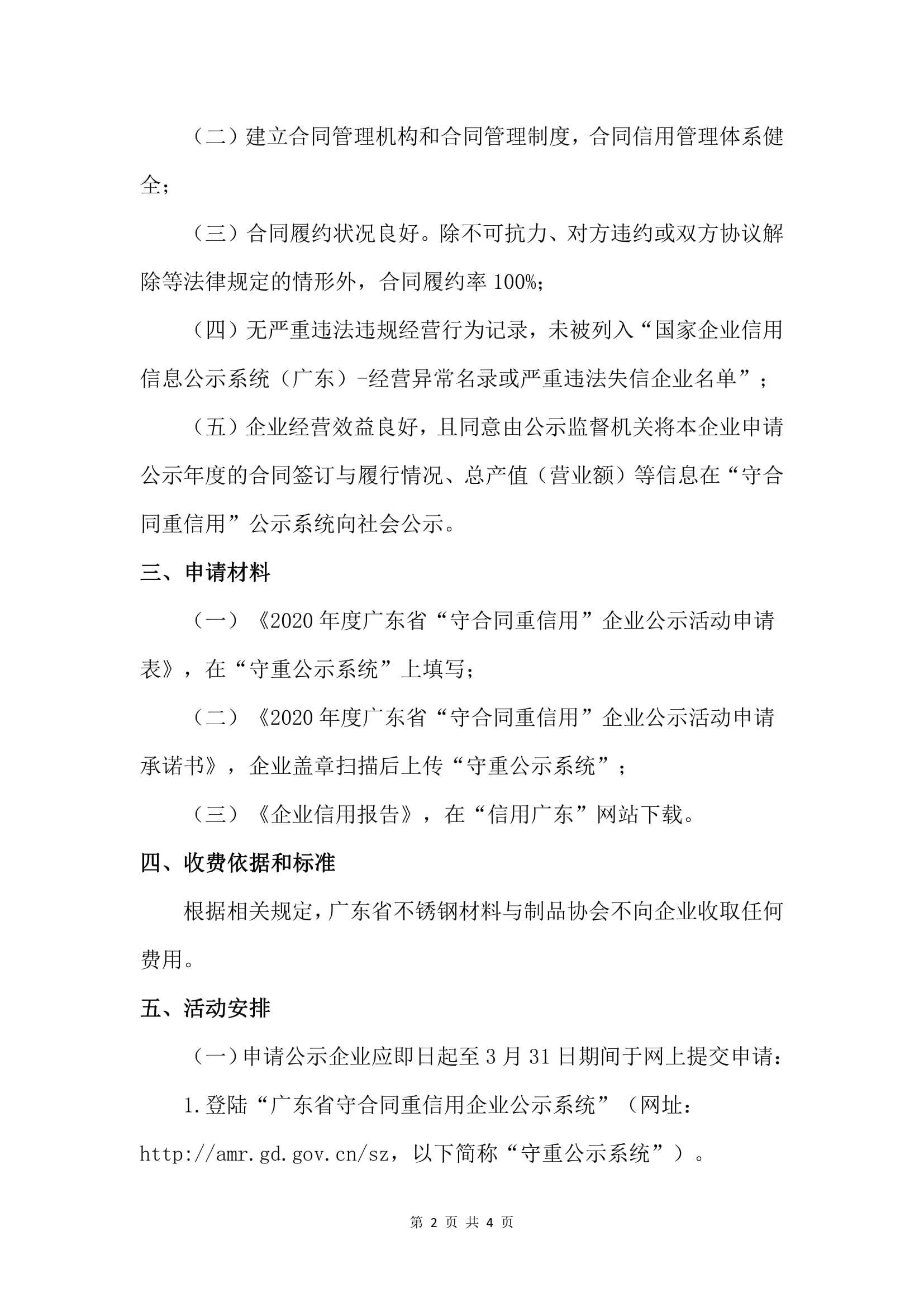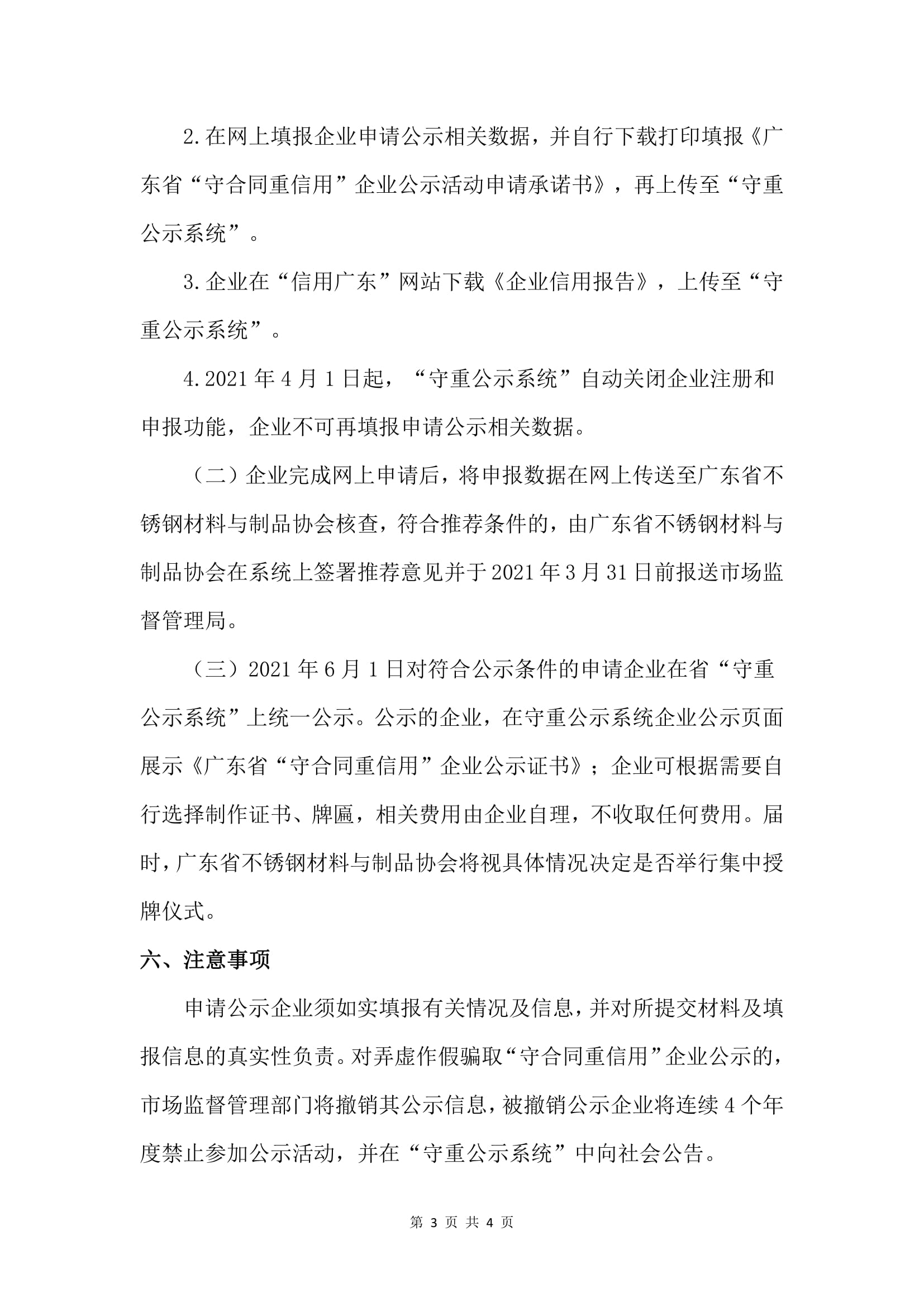 (三)2021年6月1日对符合公示条件的申请企业在省“守重公示系统”上统一公示。公示的企业,在守重公示系统企业公示页面展示《广东省“守合同重信用”企业公示证书》;企业可根据需要自行选择制作证书、牌匾,相关费用由企业自理,不收取任何费用。届时,广东省不锈钢材料与制品协会将视具体情况决定是否举行集中授牌仪式。
