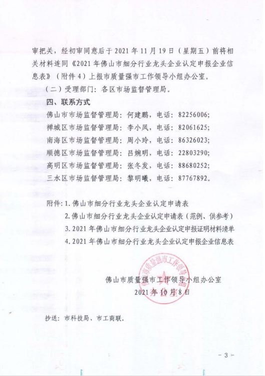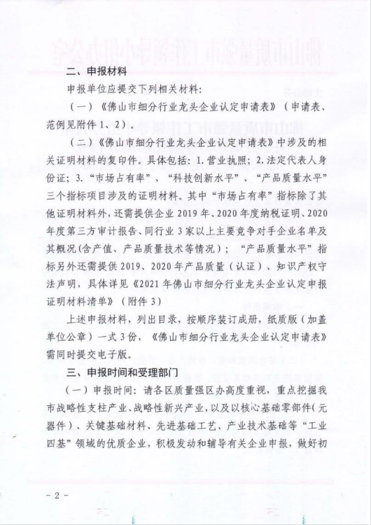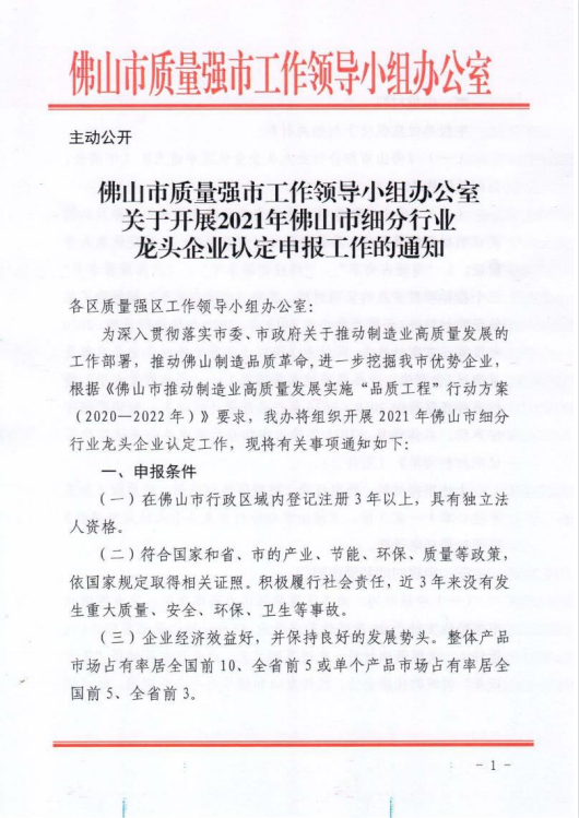 2021年佛山市细分行业龙头企业认定申报启动