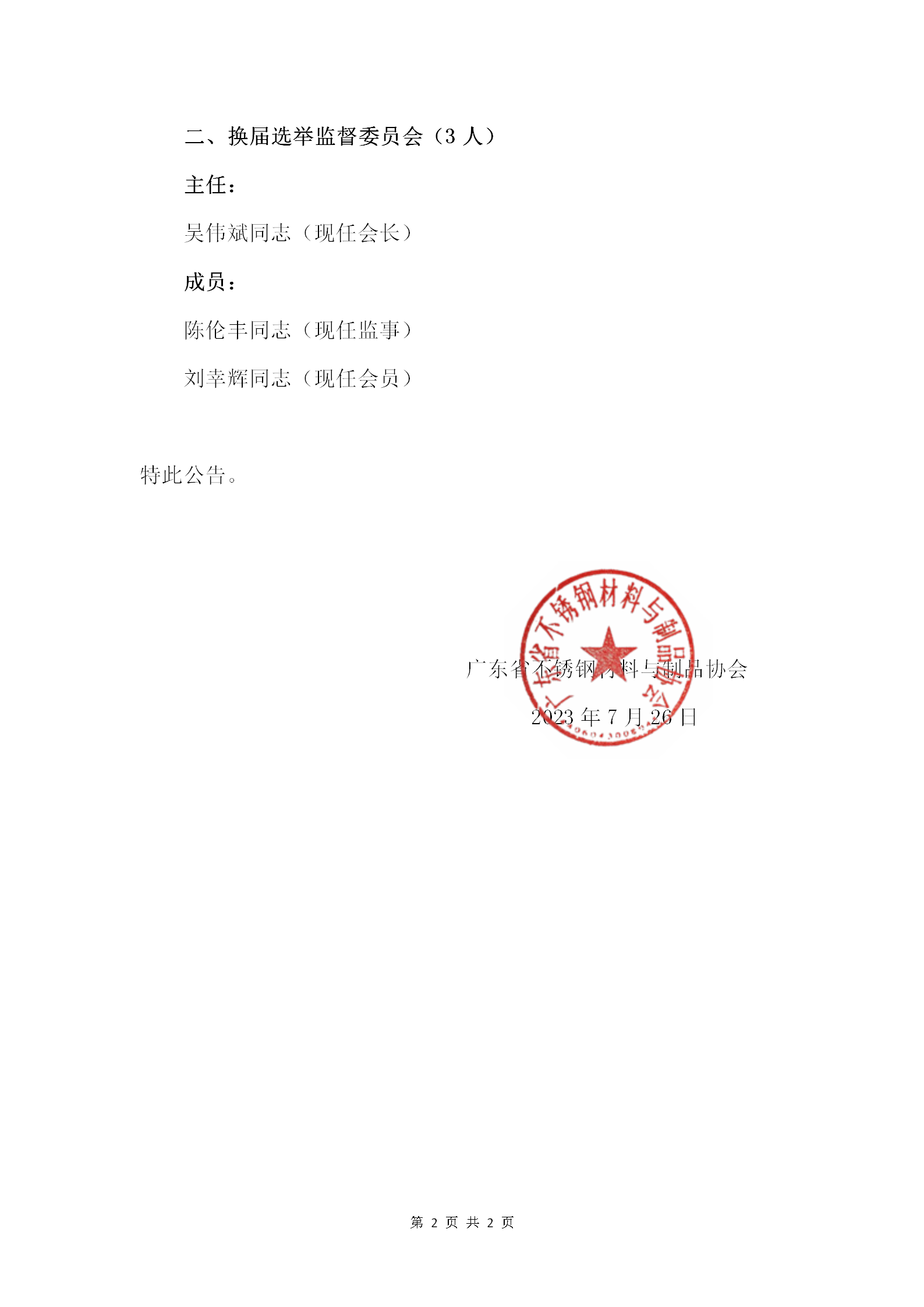 关于广东省不锈钢材料与制品协会成立换届工作领导小组、选举监督委员会的公告