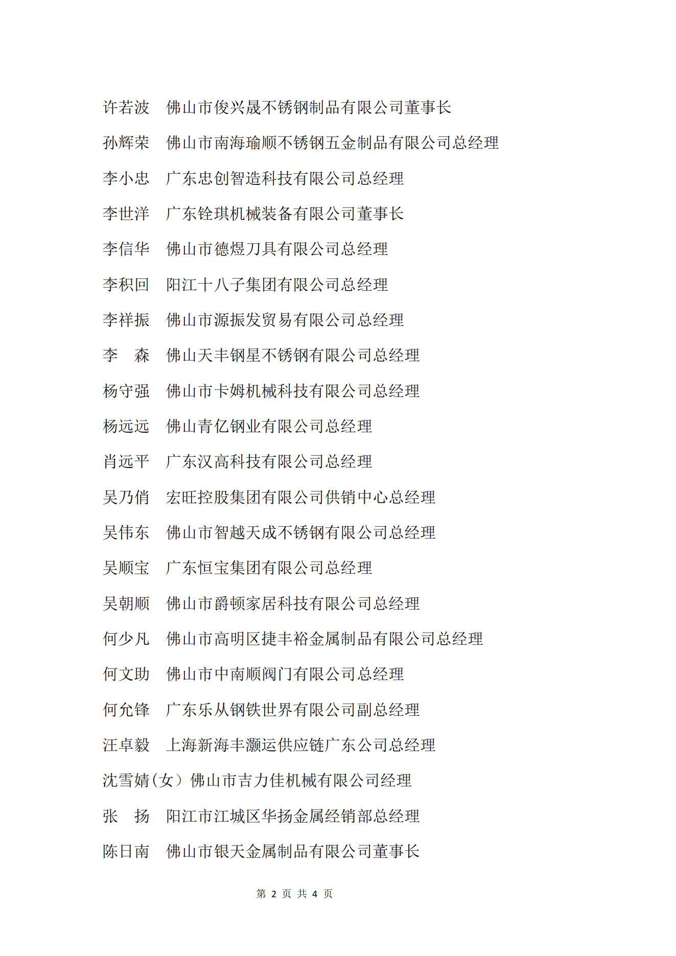 广东省不锈钢材料与制品协会第三届领导班子候选人名单公示
