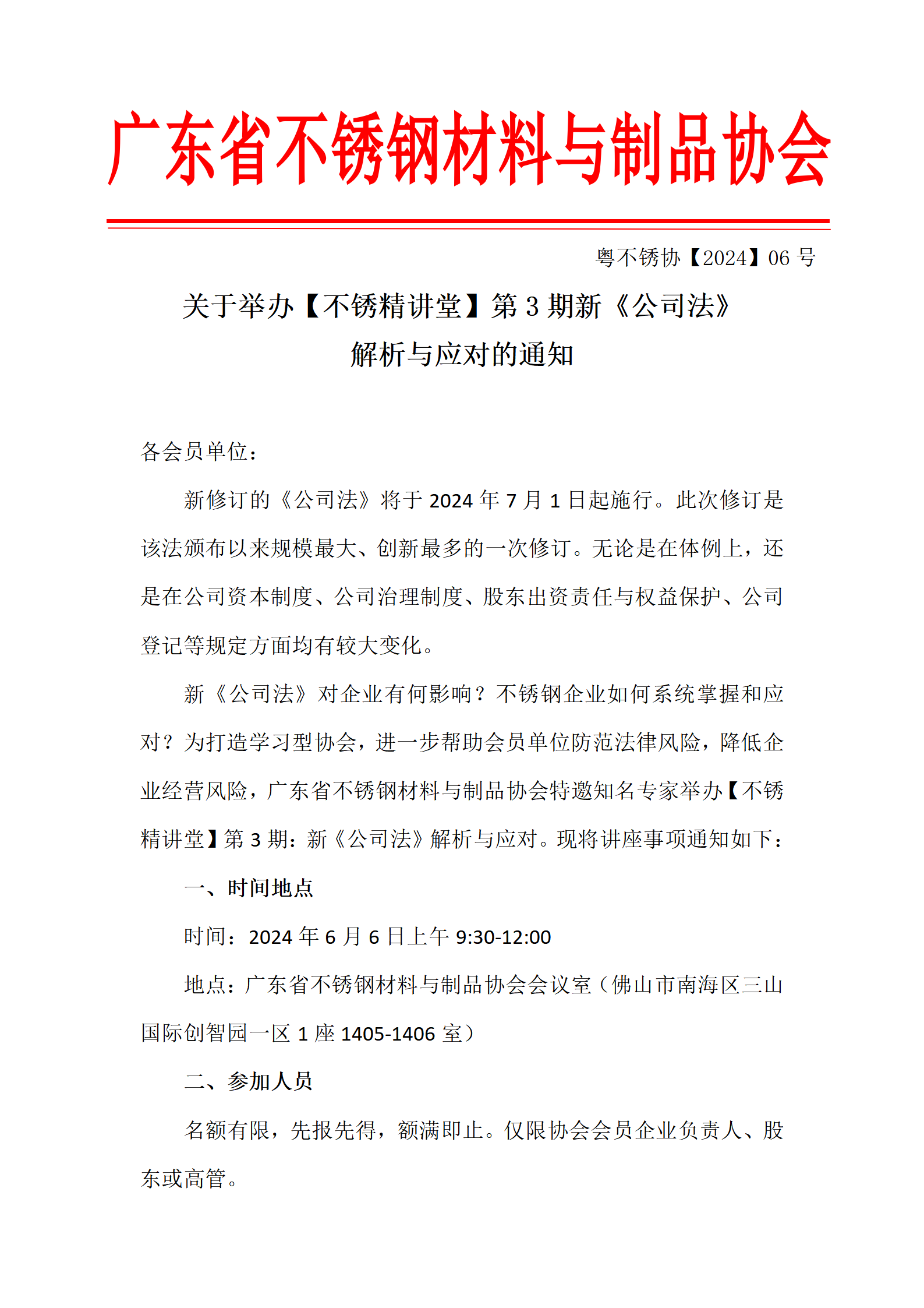 关于举办【不锈精讲堂】第3期新《公司法》解析与应对的通知
