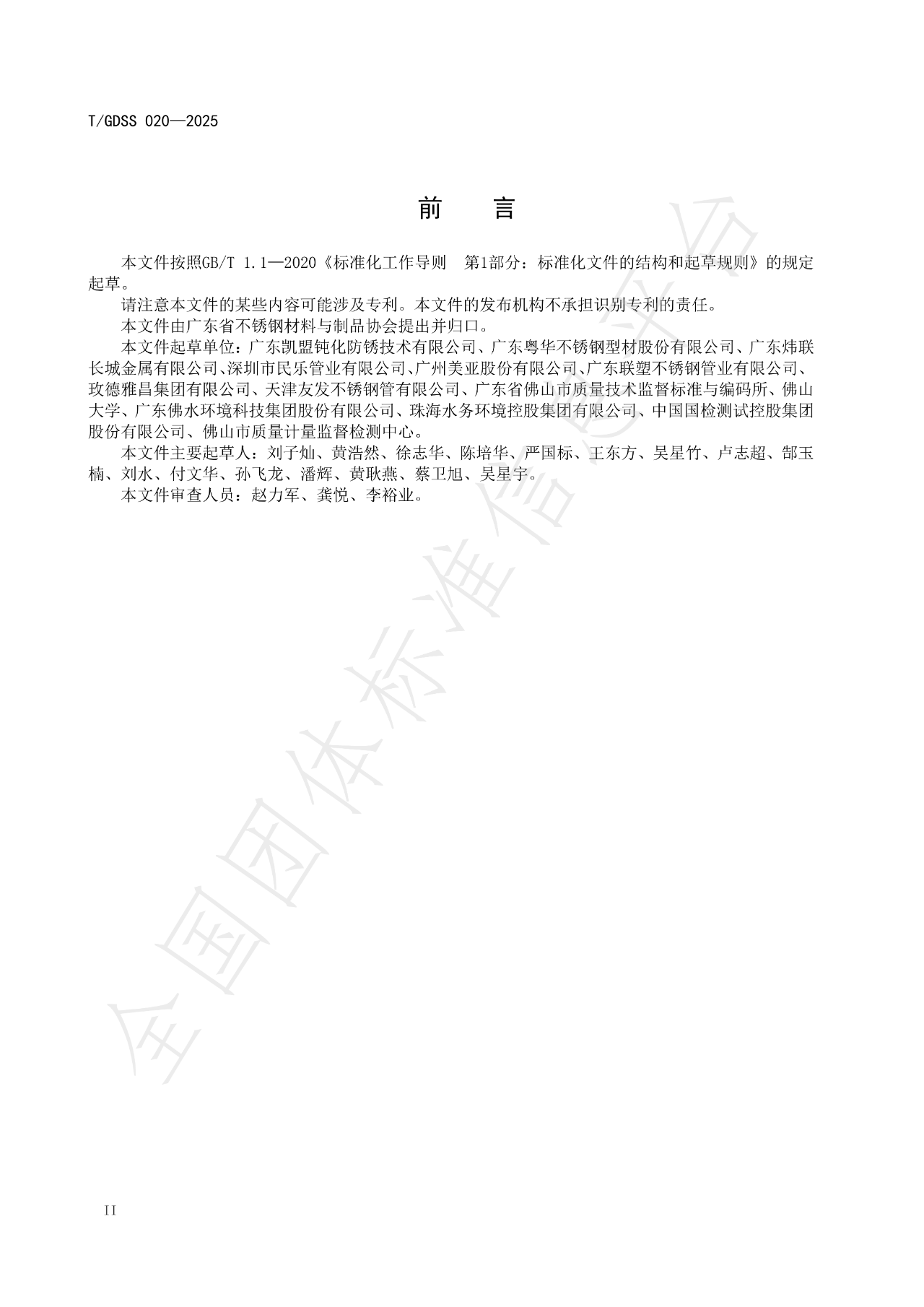 本文件起草单位:广东凯盟钝化防锈技术有限公司、广东粤华不锈钢型材股份有限公司、广东炜联长城金属有限公司、深圳市民乐管业有限公司、广州美亚股份有限公司、广东联塑不锈钢管业有限公司、玫德雅昌集团有限公司、天津友发不锈钢管有限公司、广东省佛山市质量技术监督标准与编码所、佛山大学、广东佛水环境科技集团股份有限公司、珠海水务环境控股集团有限公司、中国国检测试控股集团股份有限公司、佛山市质量计量监督检测中心。