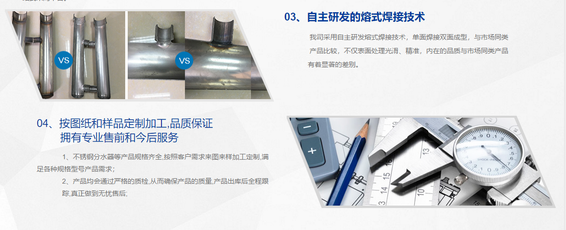 广州共誉秉承“以质取胜、以信为本”为经营理念;“让不锈钢管道安装更简易”为企业使命;以“共赢、感恩,敬业、精益、创新”为企业核心价值观。该公司始终致力于解决因水管的材质而引起的二次水污染,为客户提供高品质的不锈钢分水器、不锈钢稳流器、装配式管道系统、不锈钢卫生级饮用水管、双卡压不锈钢管件、承插焊接式不锈钢管件、沟槽式不锈钢管件、不锈钢分水器等产品。立志把广州共誉发展成为综合性不锈钢管道系统的制造商和服务提供商,打造成具有国际竞争力的品牌,成为客户心中值得信赖的合作伙伴。