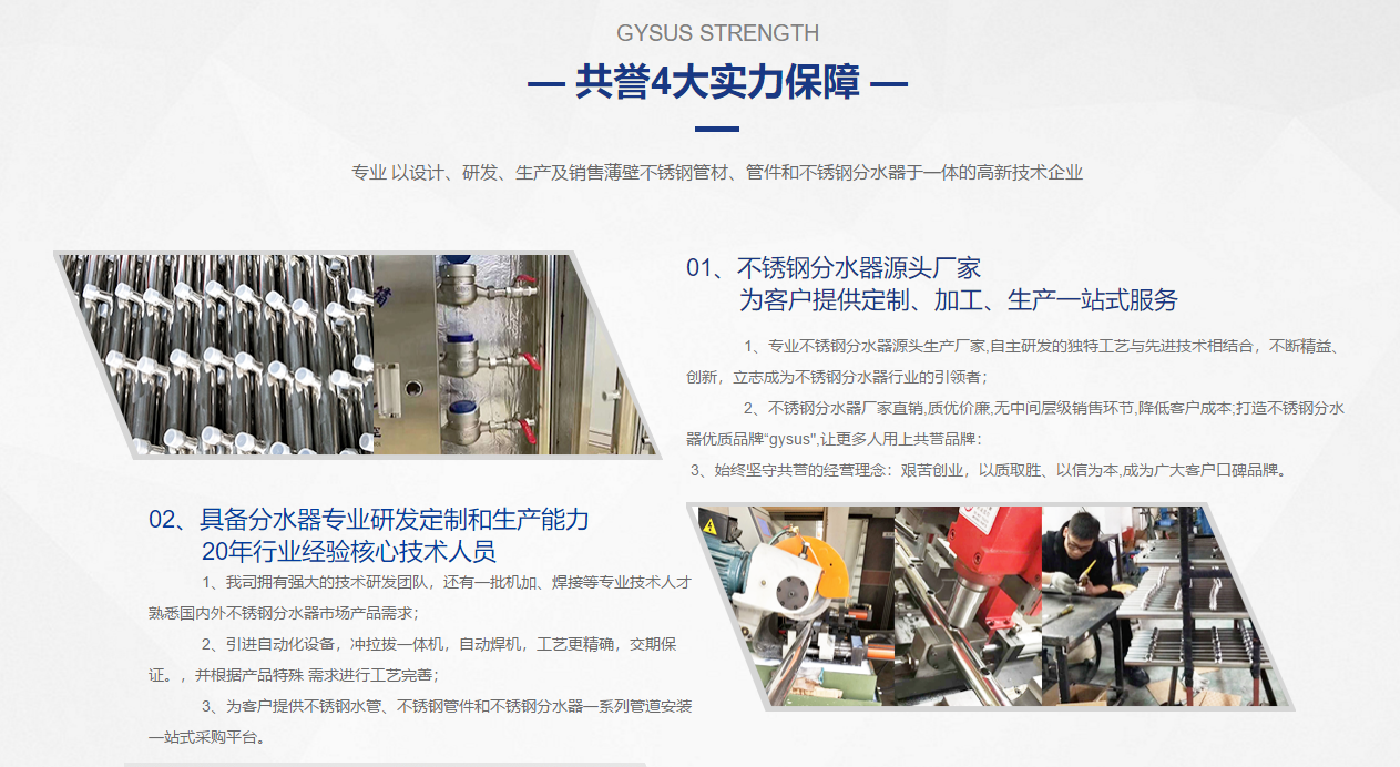 广州共誉不锈钢流体设备有限公司(简称广州共誉)系广东省不锈钢材料与制品协会会员单位,其成立于2013年,是在广州厚礴管道设备有限公司基础上投建的,是一家专业设计、研发、生产及销售不锈钢分水器,自来水分水器、不锈钢分集水器、法兰分水器以及不锈钢管材管件于一体的高新技术企业。