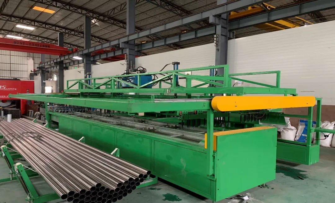 全自动防损下料机:应用到制管下料、抛光下料,防止下料擦花碰撞,保证了管材生产过程的表面质量,让品质更好。