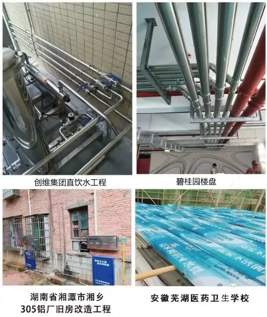 益家不锈钢水管广泛用于市政工程、星级酒店、大型楼盘、别墅装修、医院、学校、家庭等饮用水工程。其主要经营:各类不锈钢水管及不锈钢双卡压式、焊接式、沟槽式、快捷式、环压式管件及其他金属制品。经过多年的发展,益家凭借其良好的产品质量和服务,标志性的工程项目及代理、经销商遍布全国各地。