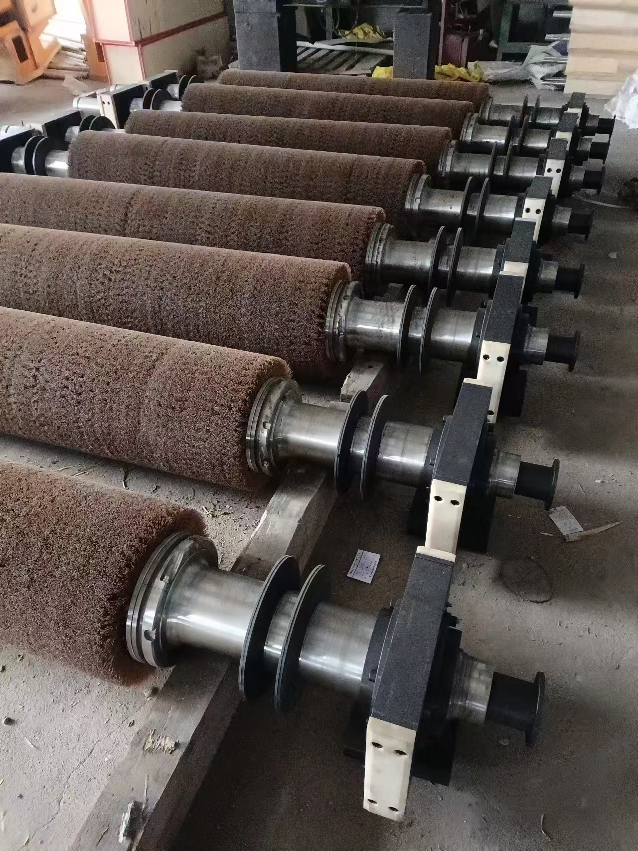 该公司客户遍布广东、江苏、山东、河北等几大钢铁厂区。主要产品有:钢板预处理线滚刷、不锈钢板退火酸洗线毛刷辊、冷轧板镀锌、镀锡、硅钢、铝板、脱脂毛刷辊等。