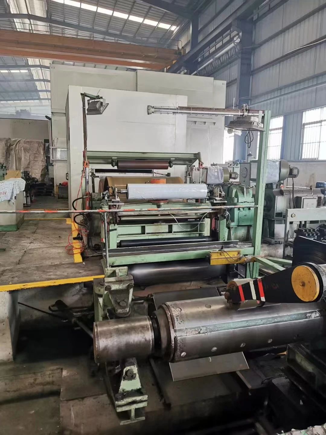 拥有多元化的设备:1450压花拉矫自动一体机,分条一体机,平板一体机,过箱贴膜一体机,真空镀色炉,磨砂一体机等