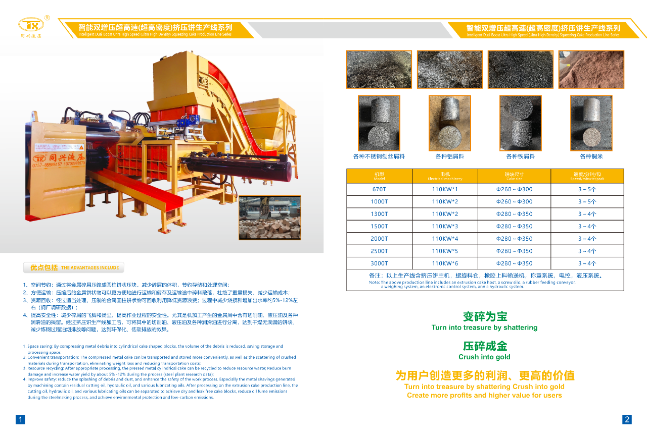 同兴是一家拥有自主研发技术团队的企业,自主研发出技术领先的智能双增压超高速控制系统及智能高速控制系统的系列产品,并应用到各种产品领域,是生产制造液压废旧金属加工设备的全球品牌,已有20多年的研发设计和生产制造的丰富经验,并不断深入研发更先进技术,推动装备制造业向绿色、智能化方向转型。