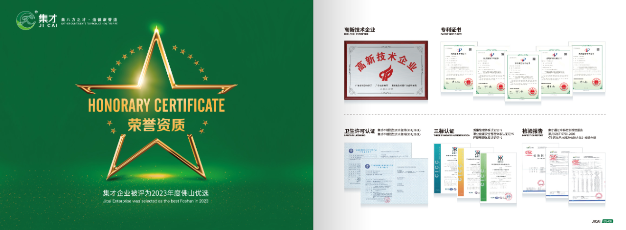 集才管益产品严格按照国标(GB)I系/II系及欧标(EN)执行。经国家审批,已荣获广东省涉及饮用水卫生安全产品卫生许可证,并通过了广东产品质量监督检验研究院和广东省疾病预防控制中心检验,以及IS09001:2008国标质量管理体系认证。