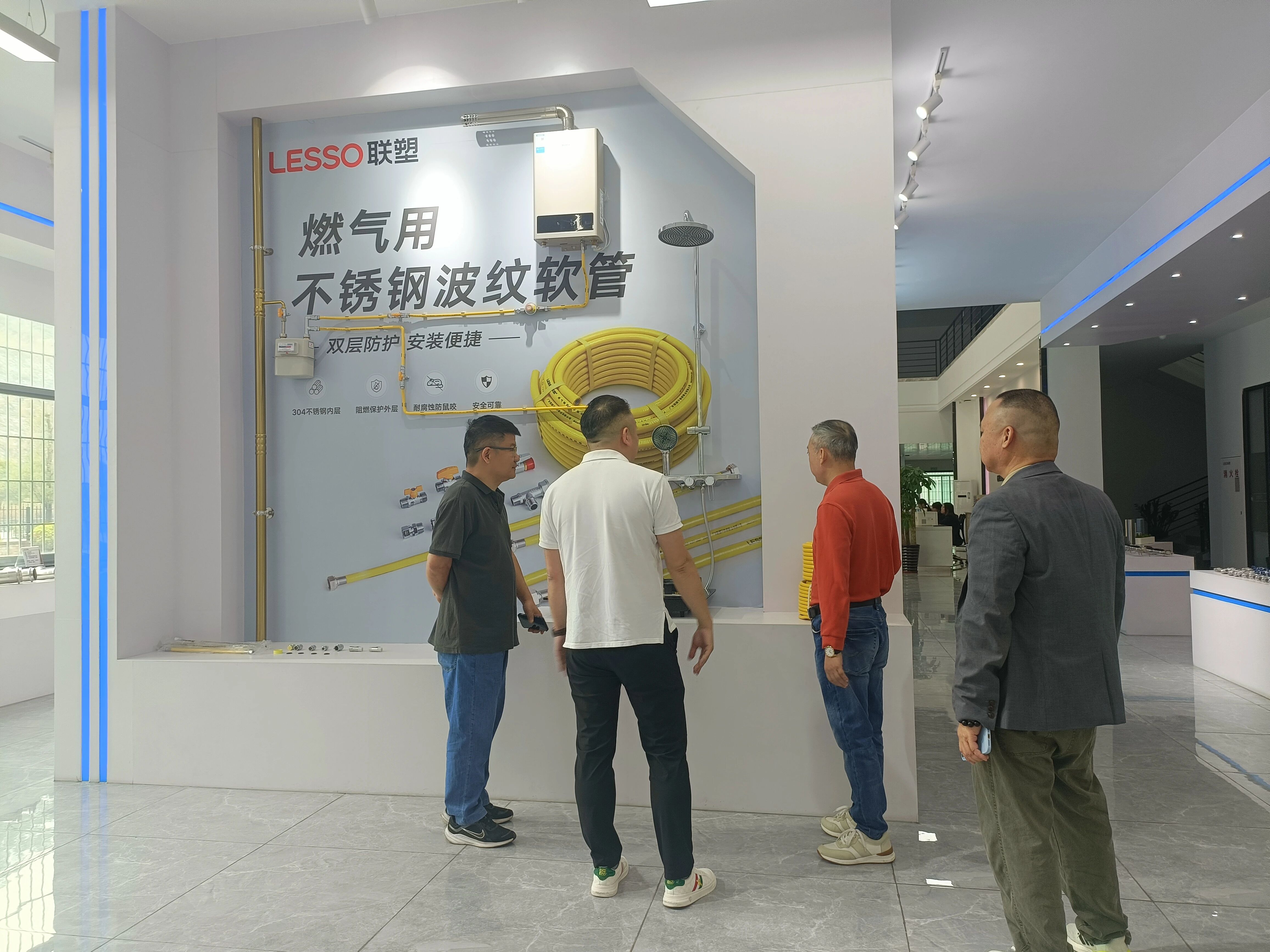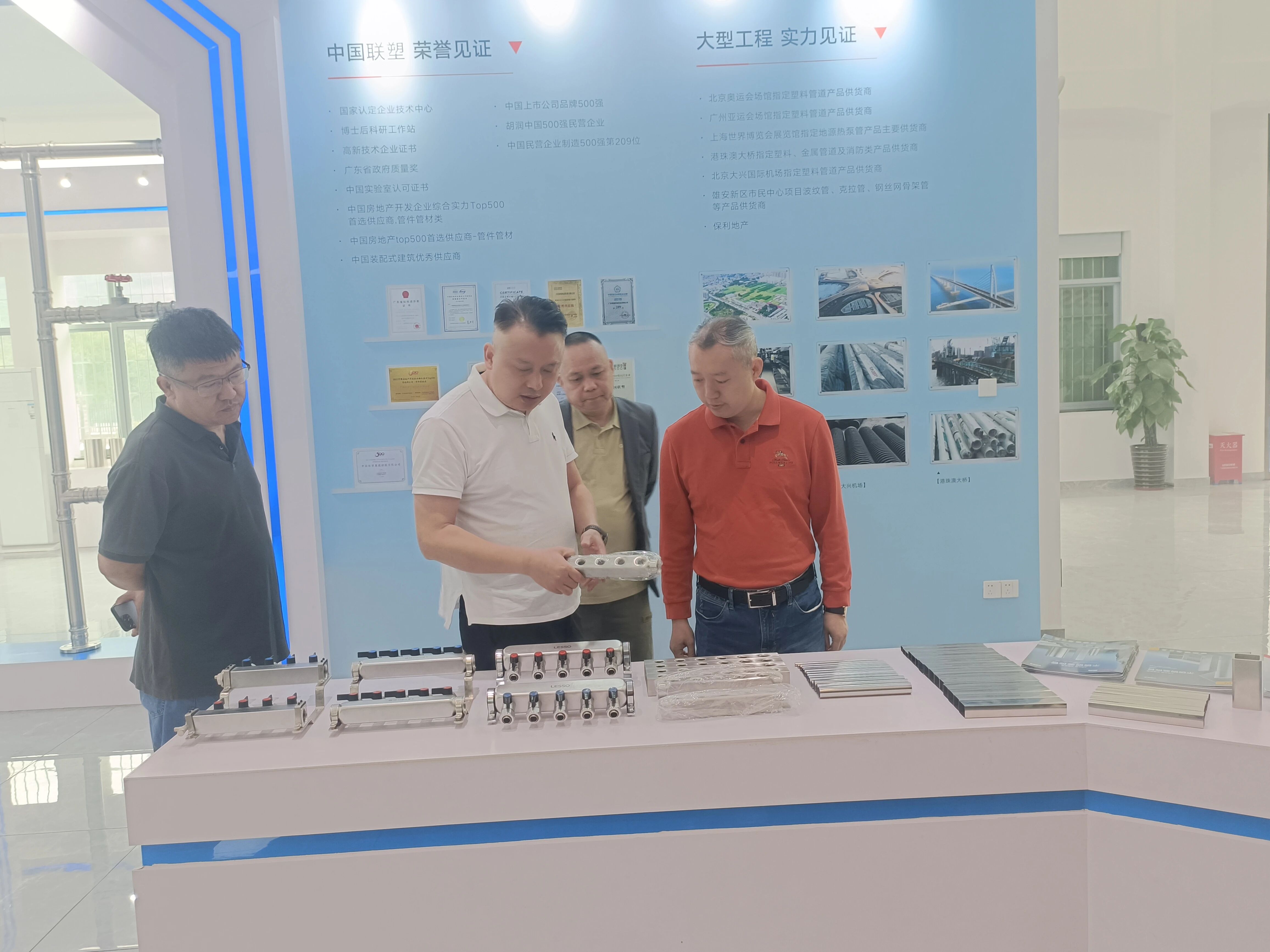 在何安杰副总经理等的陪同下,林泽榆会长一行首先参观了联塑不锈钢产品展厅、生产车间及实验室,并听取了相关介绍。