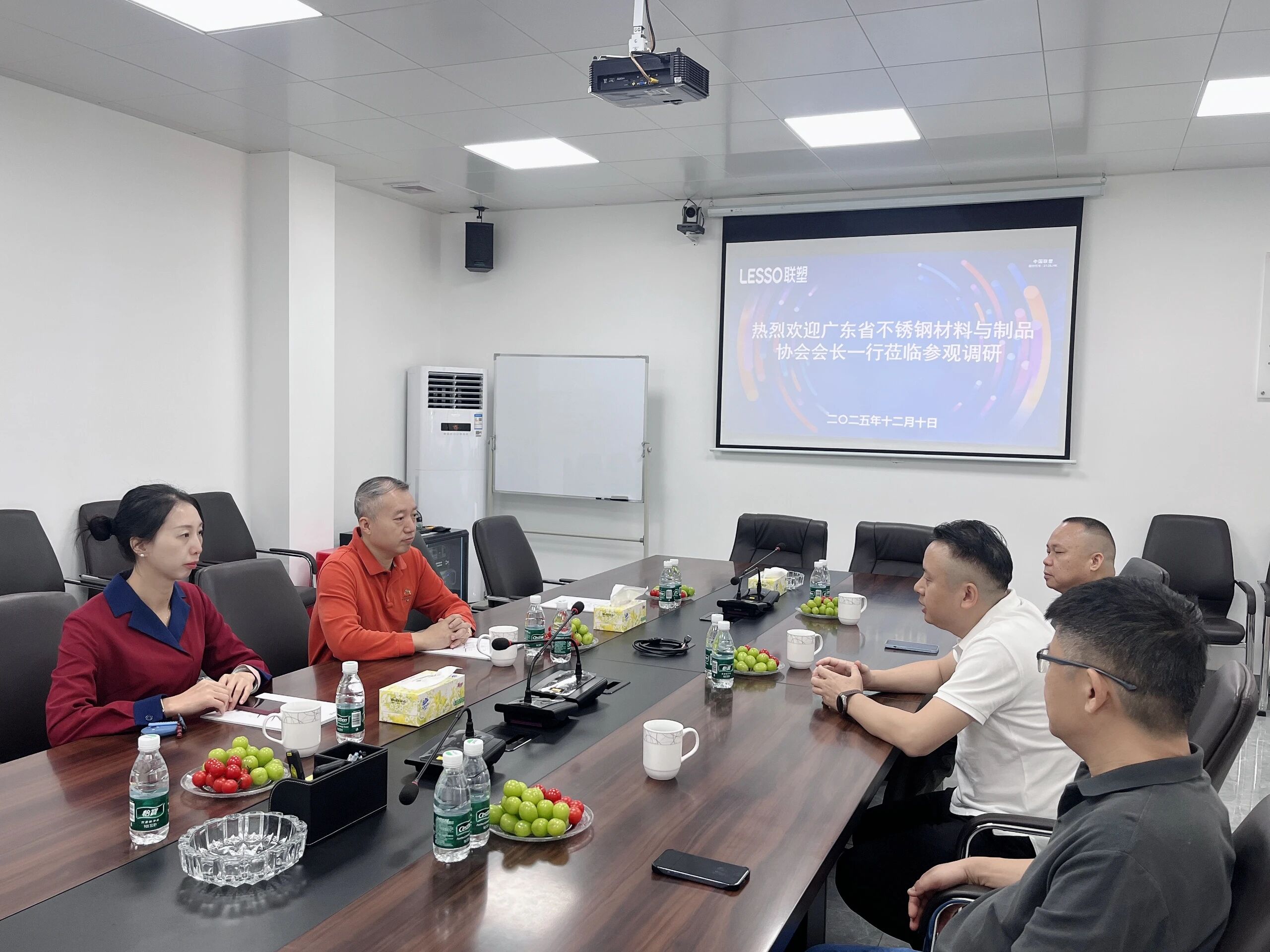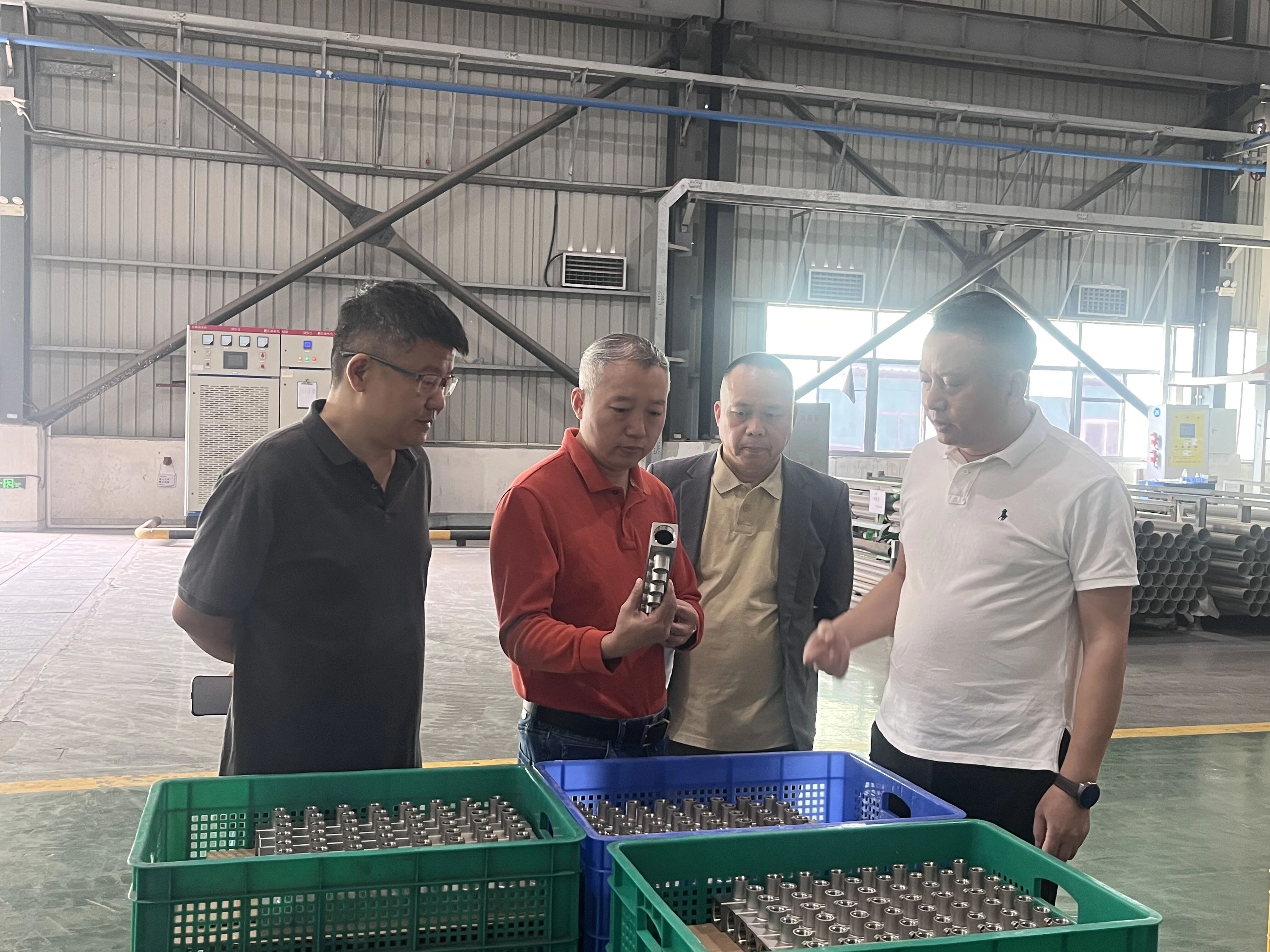 12月10日,广东省不锈钢材料与制品协会会长林泽榆、副秘书长彭剑走访了副会长单位广东联塑不锈钢管业有限公司,受副会长、总经理黄卓兴委托,副总经理何安杰、技术部主管王东方、生产部主任罗社亮予以热情接待。
