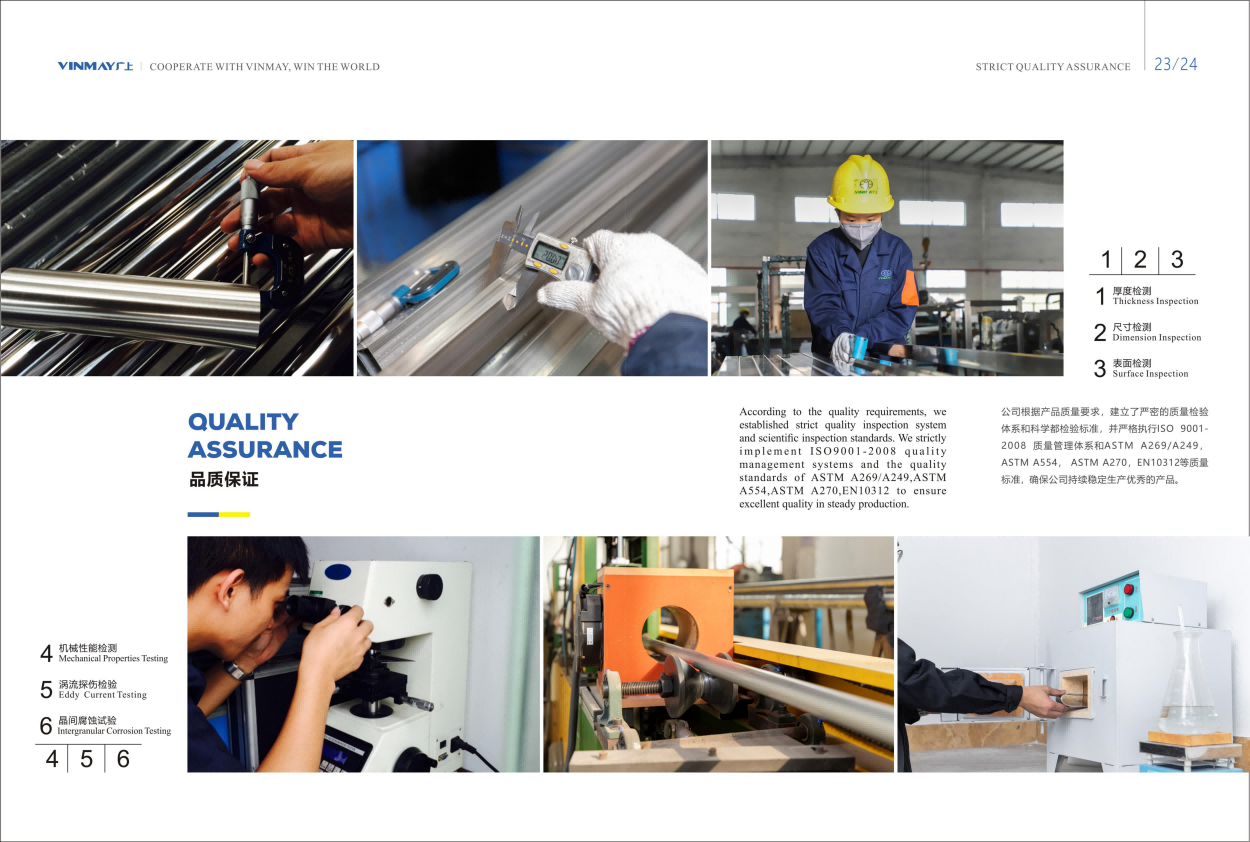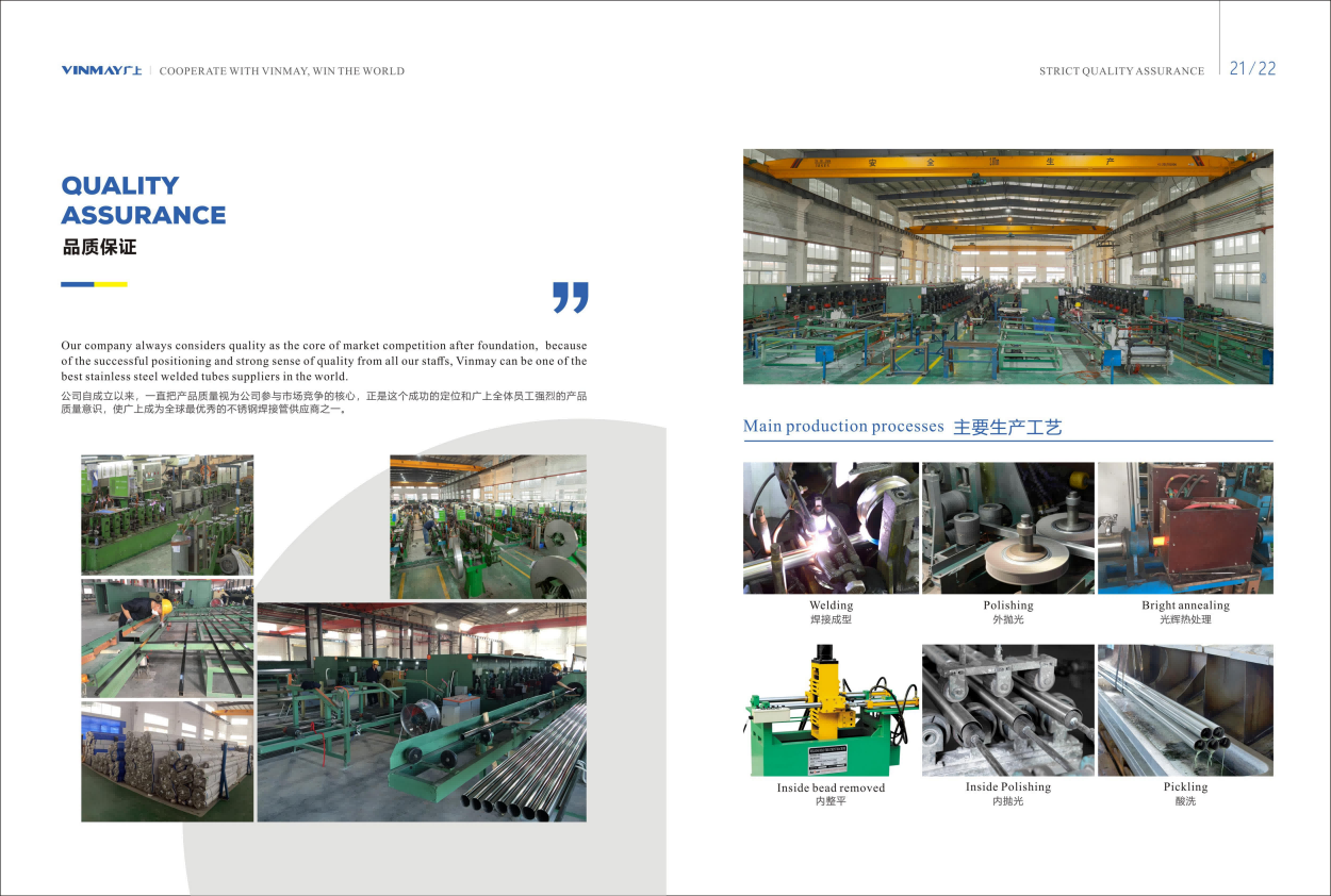 坚持品质与服务并重,按照严密的质量管理体系,建立客户满意度管理体系,服务于全球60多个国家1000家以上的客户,每年出口不锈钢焊接管超过25000吨,其中ASTM A554不锈钢焊接管的出口量位居国内同行前列。