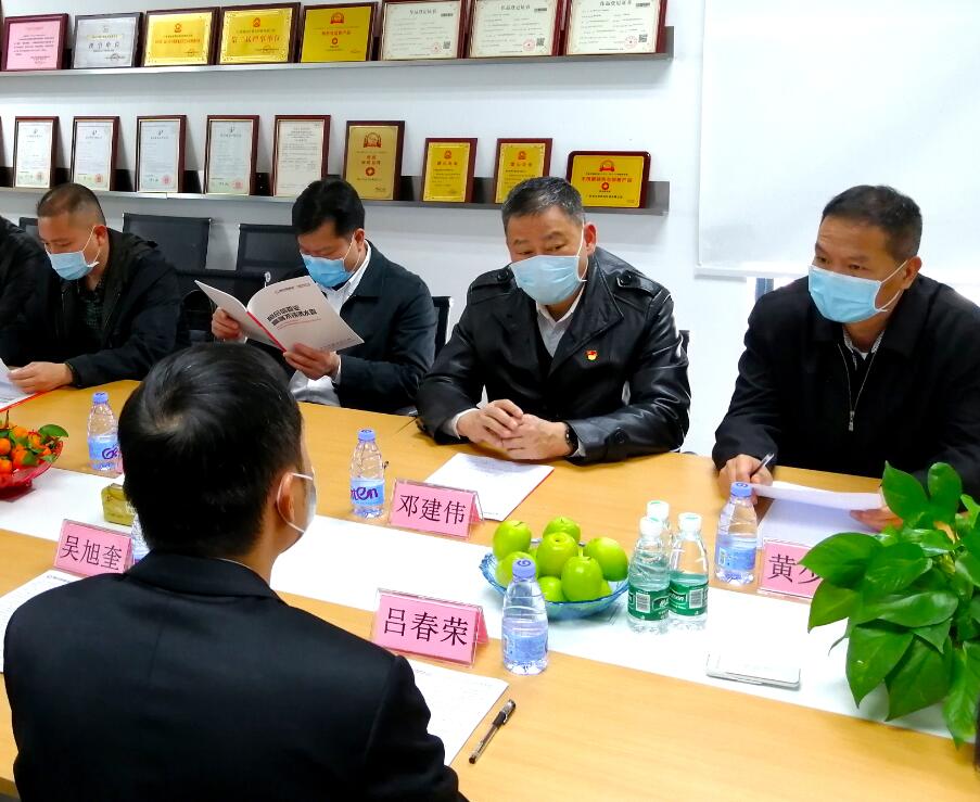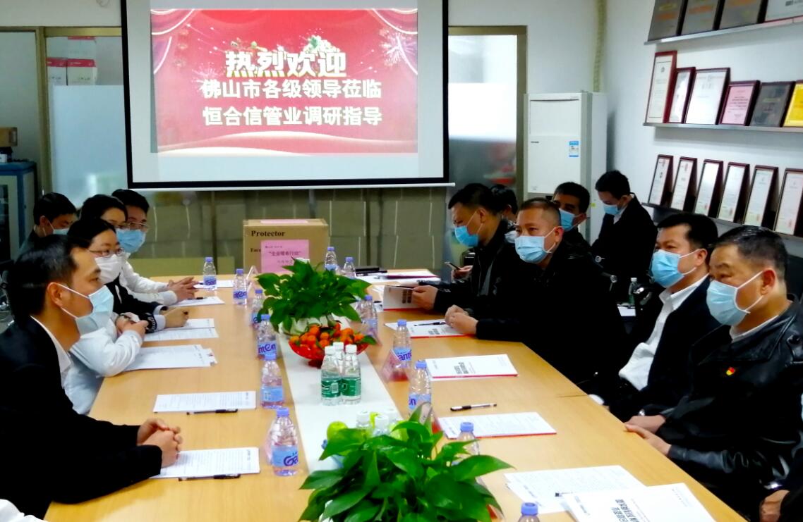 【广东省不锈钢材料与制品协会】讯 2月20日下午,佛山市委常委、政法委书记邓建伟,市委政法委常务副书记黄少文,市政务服务数据管理局局长陈伟锋、副局长卢海英,禅城区委副书记、政法委书记区柱明,禅城区区委区府办副主任叶美平,禅城区政法委常务副书记罗健华,禅城区证数局局长郑小广,张槎街道党工委副书记侯乐安等领导莅临广东省不锈钢材料与制品协会理事兼水管分会秘书长单位广东恒合信管业科技有限公司,了解企业复工复产及发展情况,聆听企业诉求,统筹抓好经济发展各项工作,为企业复工创造条件。
