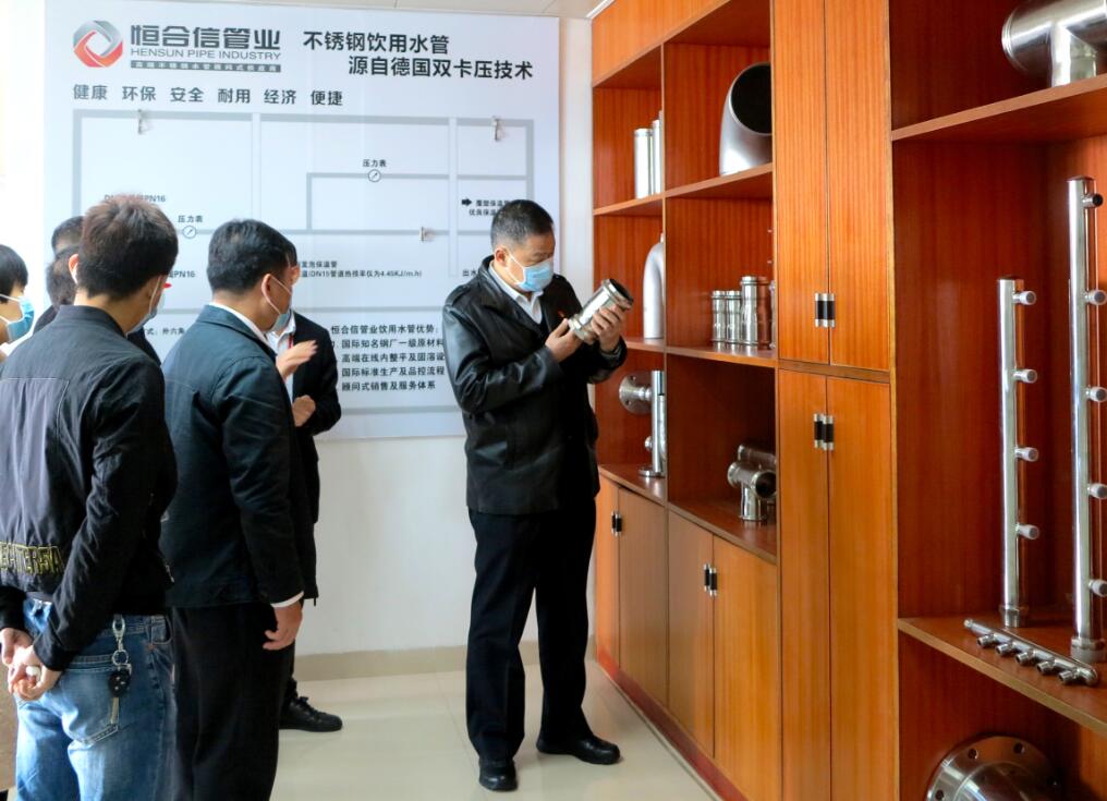 邓建伟常委一行在恒合信管业总经理吕春荣等公司领导的陪同下,参观了产品展示厅,仔细了解恒合信高端不锈钢水管生产、销售、研发及未来发展等工作的最新进展。总经理吕春荣介绍了公司发展情况,作为高端不锈钢水管的国家高新技术企业,恒合信有信心保持企业业绩的稳定增长。