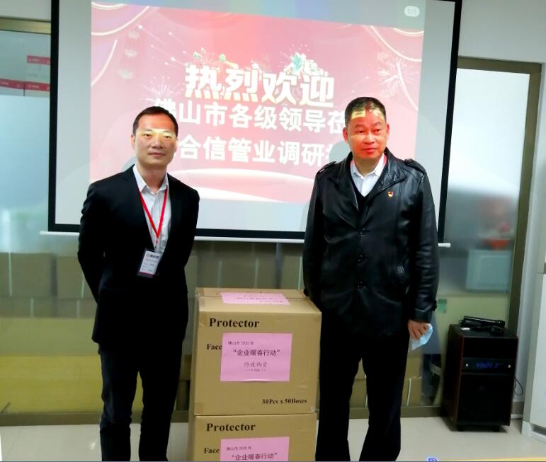 最后,邓建伟常委及区柱明书记勉励恒合信管业继续做大做强、实现高质量发展,做好高端不锈钢水管产业,使佛山制造名扬世界,并代表佛山市委市政府送上紧缺防疫物资口罩一批。